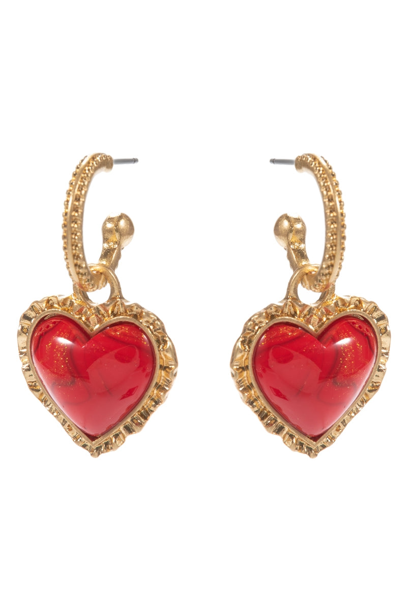 Valentine Vinatge Metal W Faux Stone Hoop Earrings