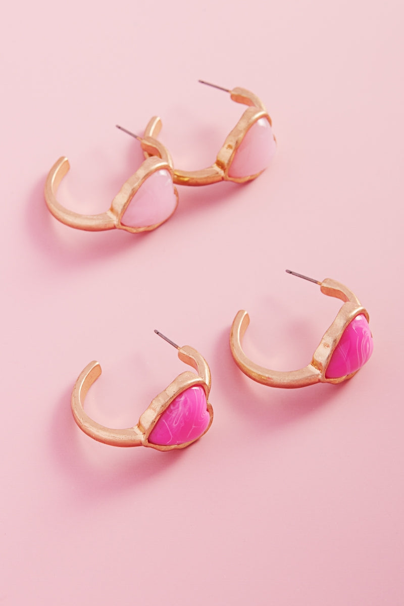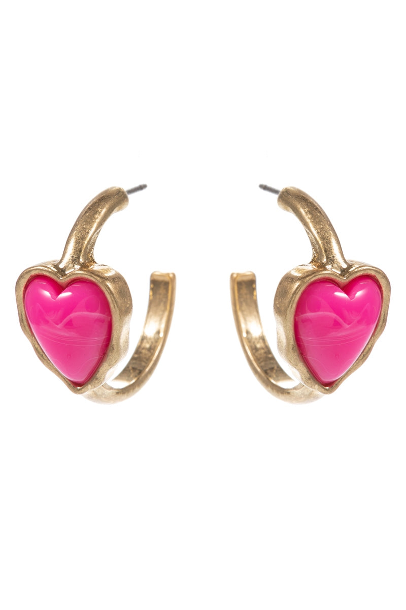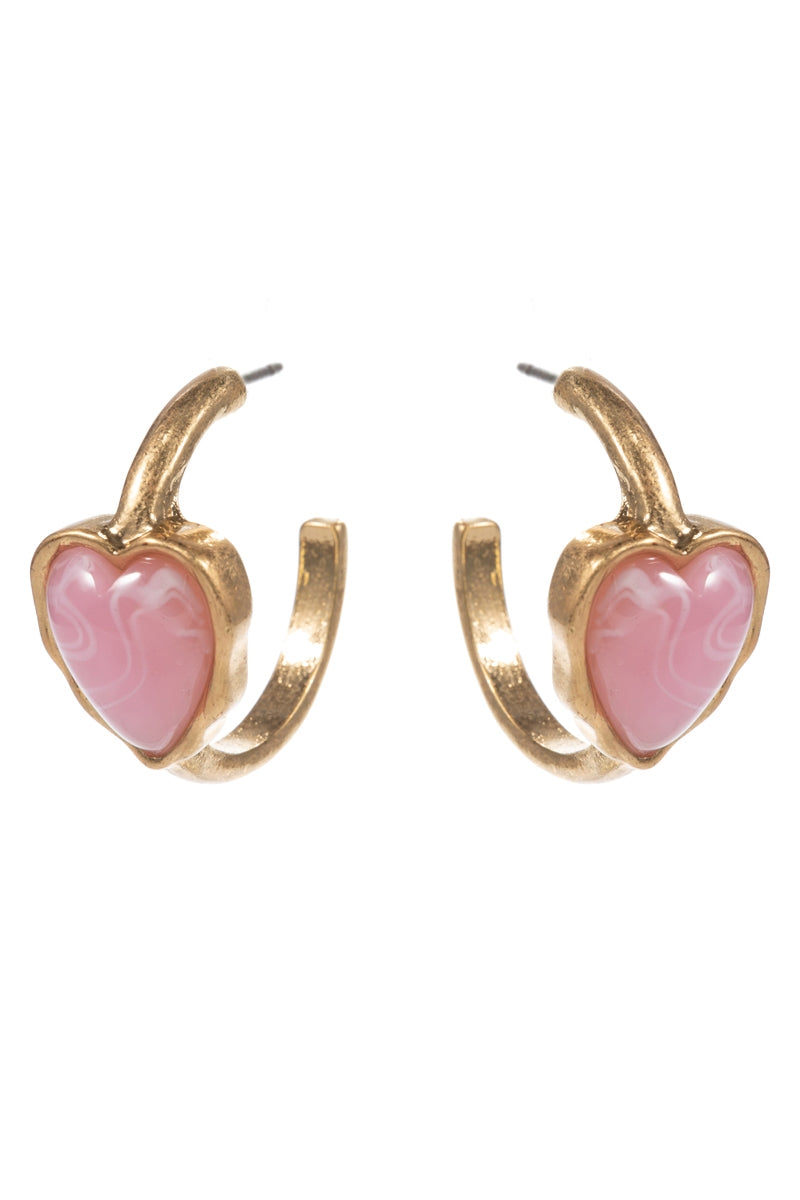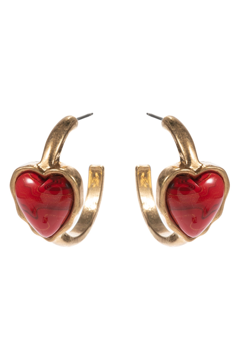 Valentine Vinatge Metal W Faux Stone Hoop Earrings