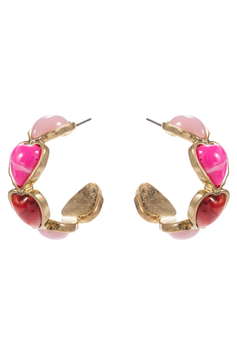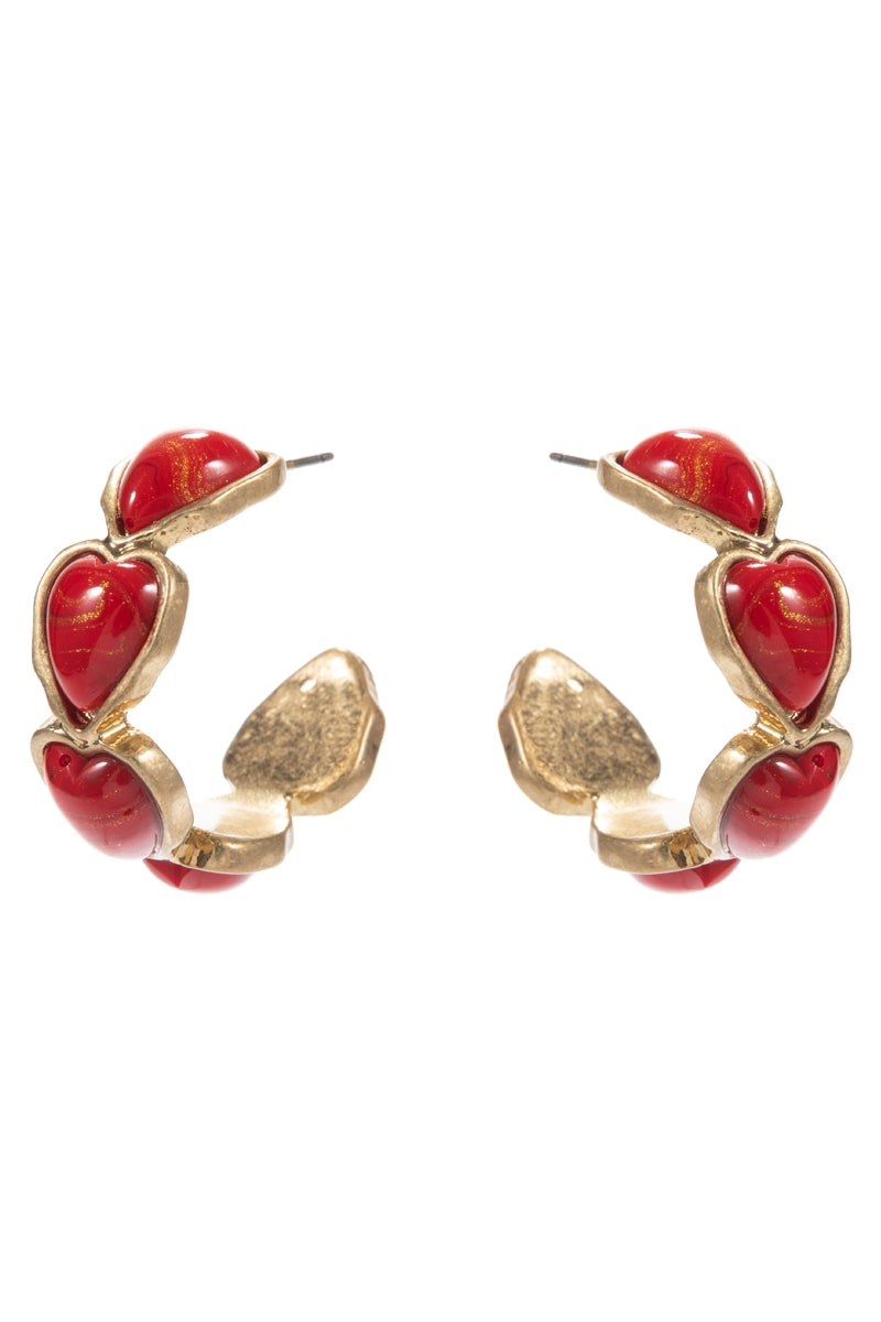 Valentine Vintage Metal W Faux Stone Hoop Earrings