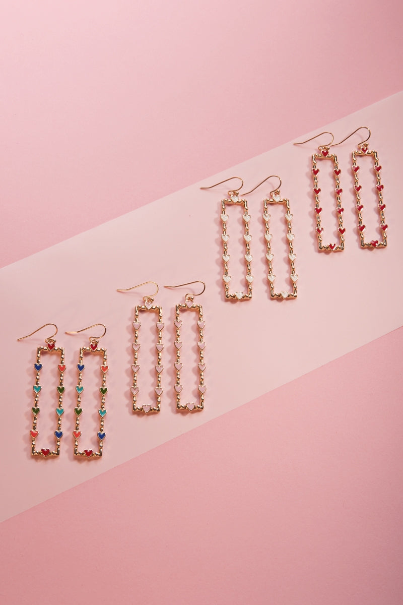 Valentines Day Bar Heaert Enamel Hook Earrings