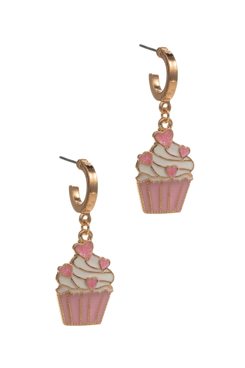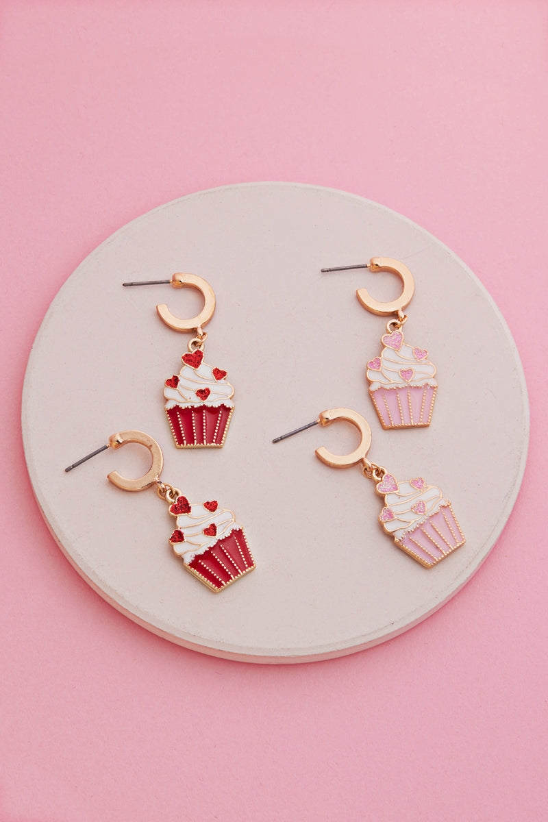 Valentines Day Cupcake Enamel Hoop Earrings