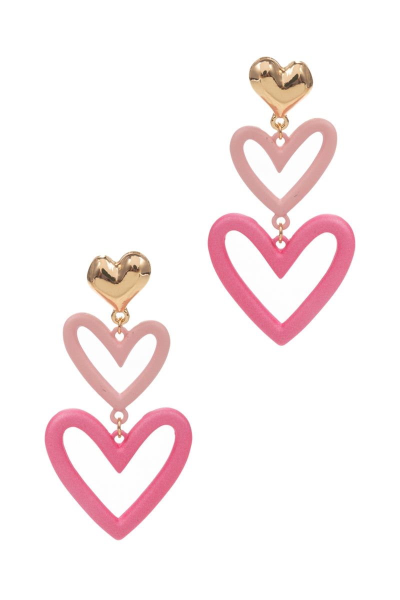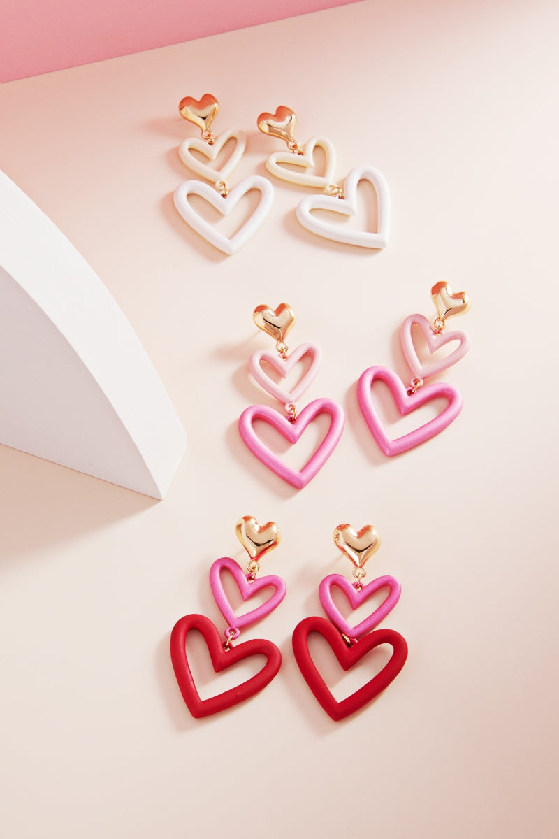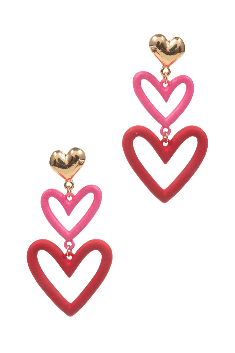 Valentines Day Heart 3Drop Mix Color Post Earrings