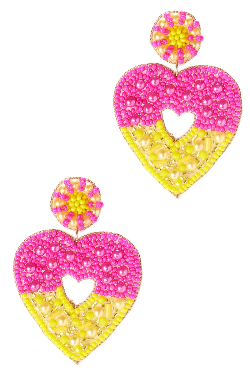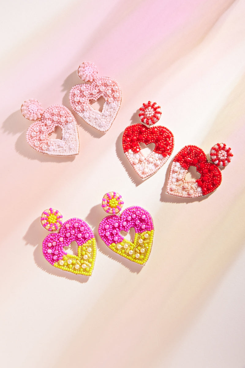 Valentines Day Heart Beaded Post Earrings