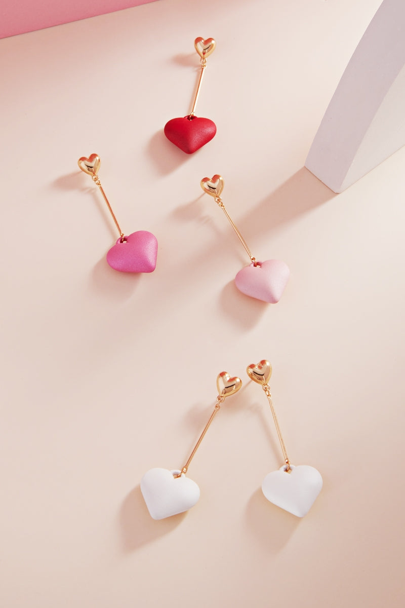 Enhance your outfit with these elegant 2.75 inch heart shaped earrings. The color coating adds a touch of vibrancy while the linear post design gives them a modern twist. Perfect for any occasion, these earrings will elevate your style.