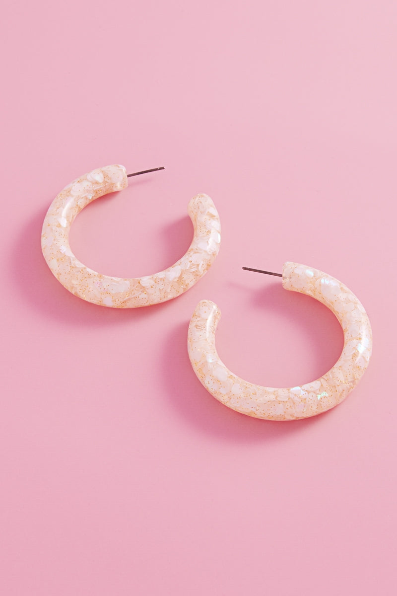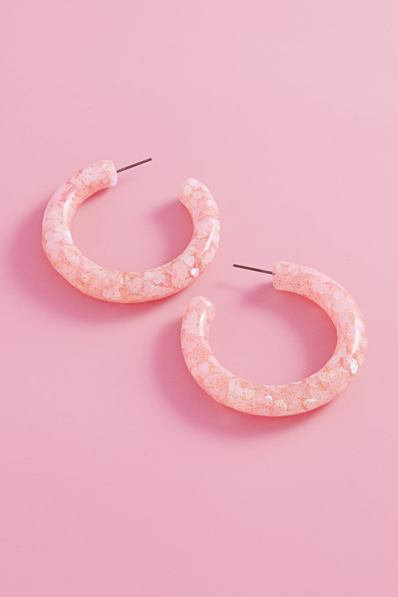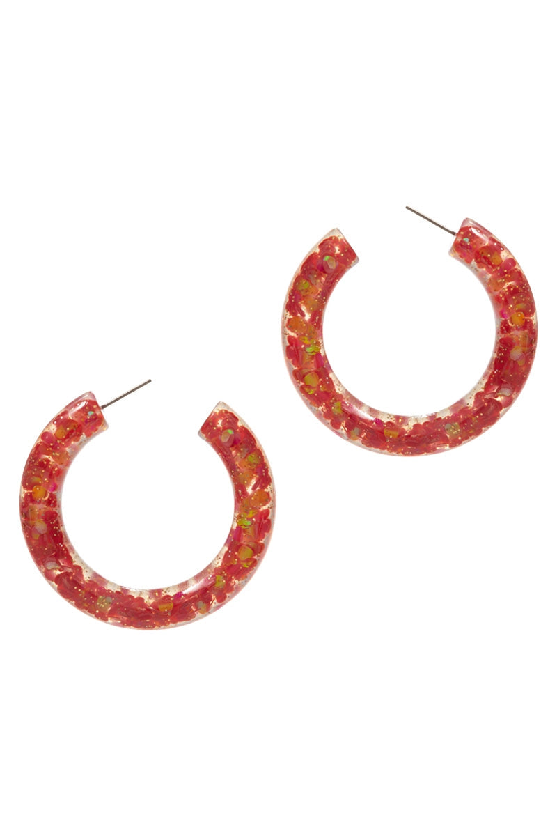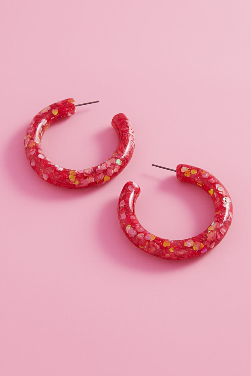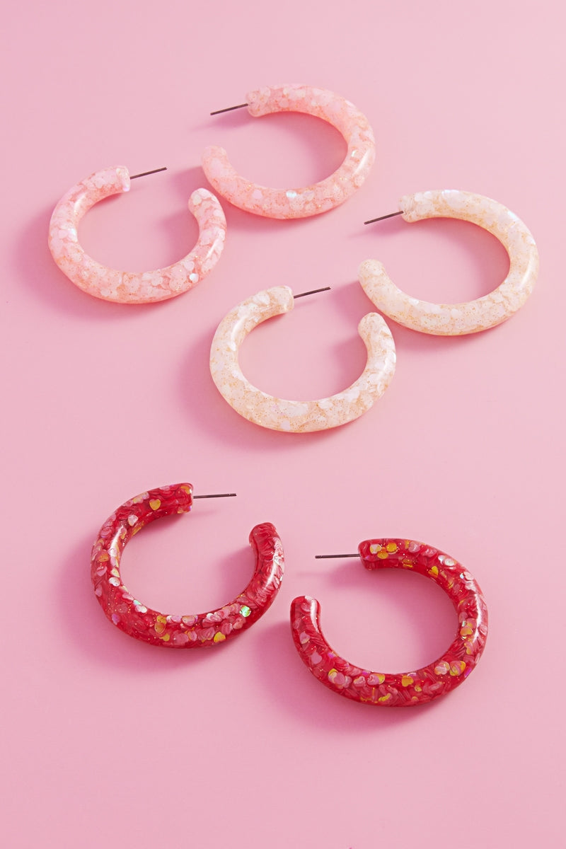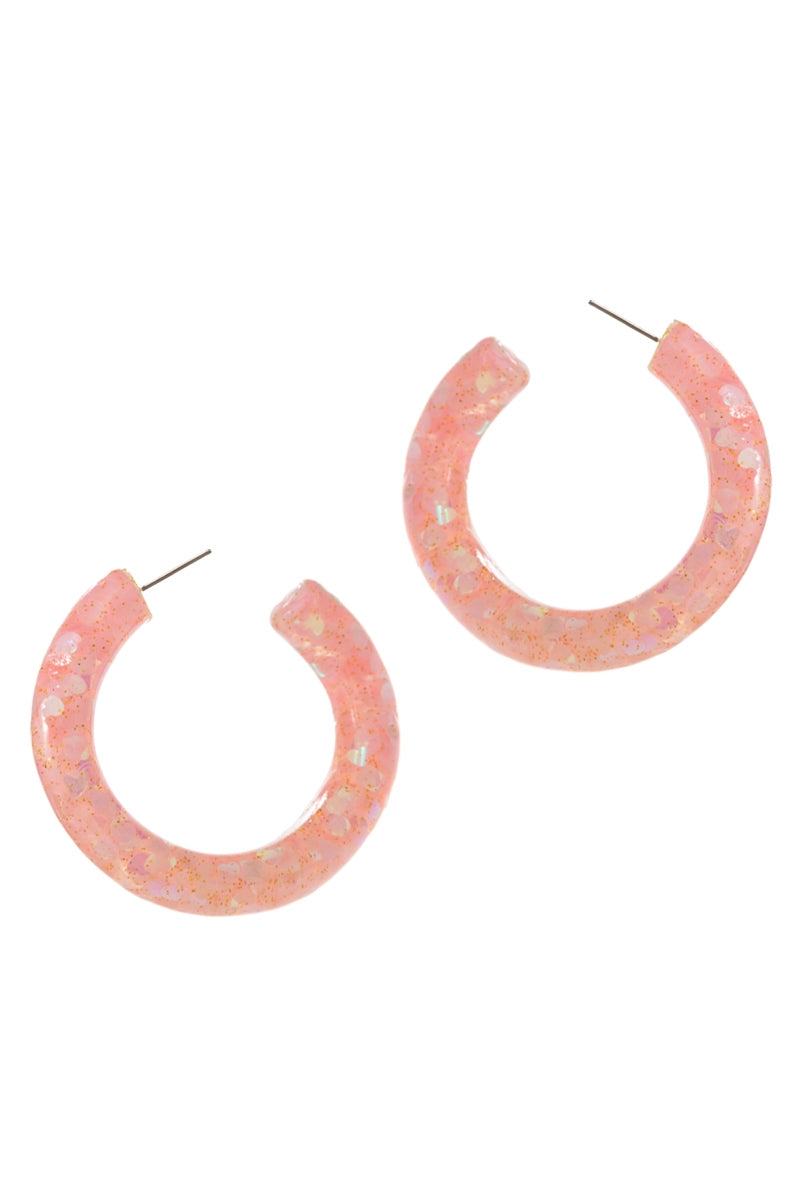 Valentines Day Heart Glitter Resin Hoop Earrings