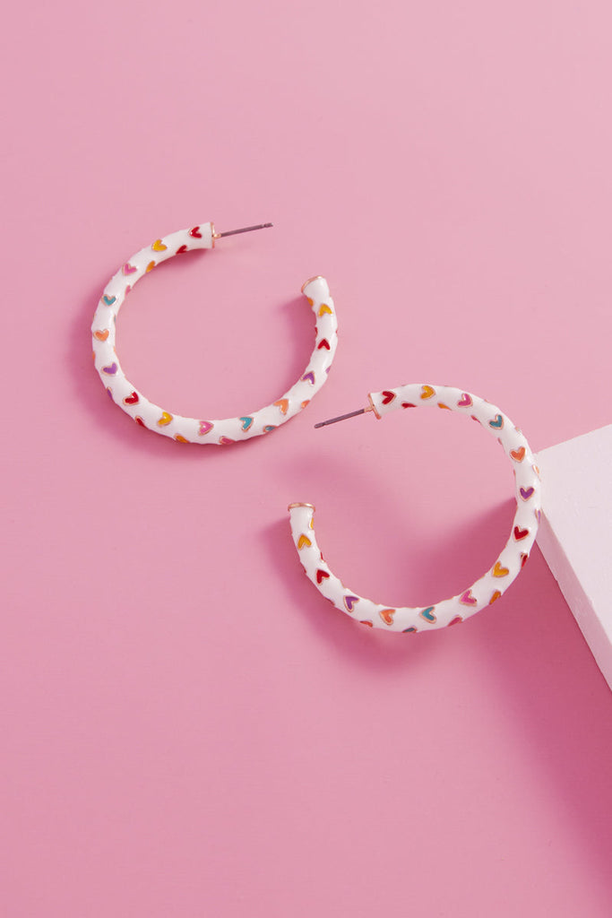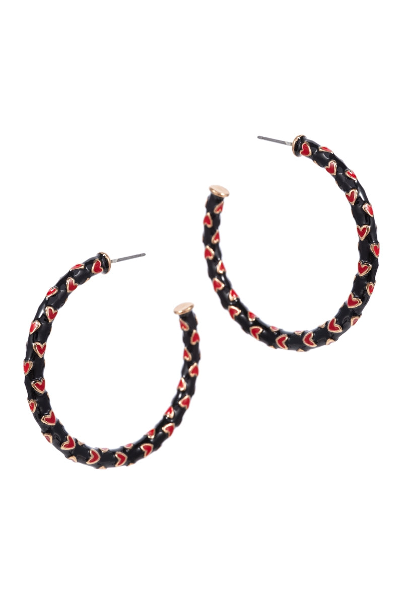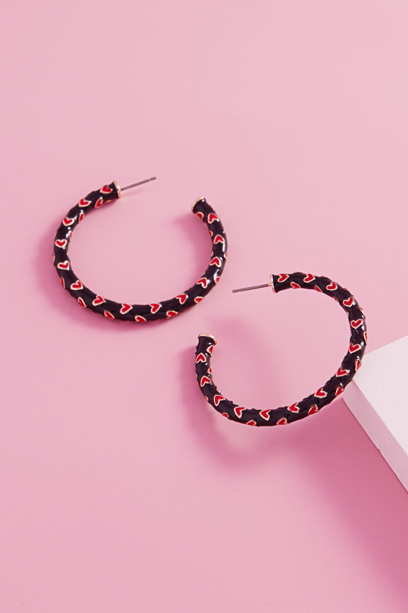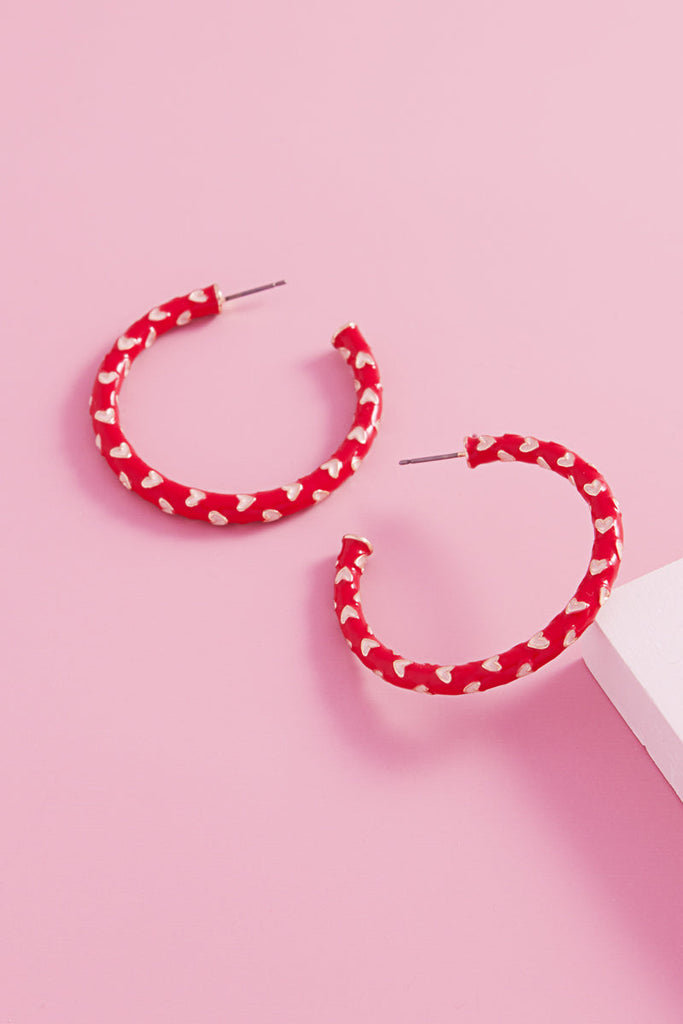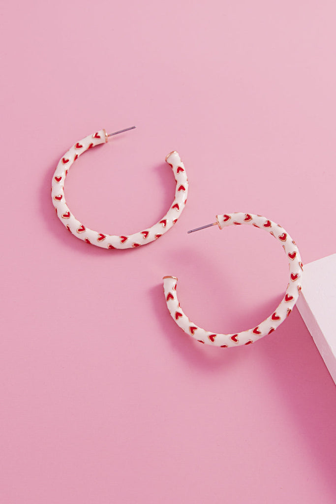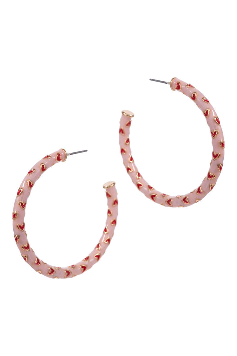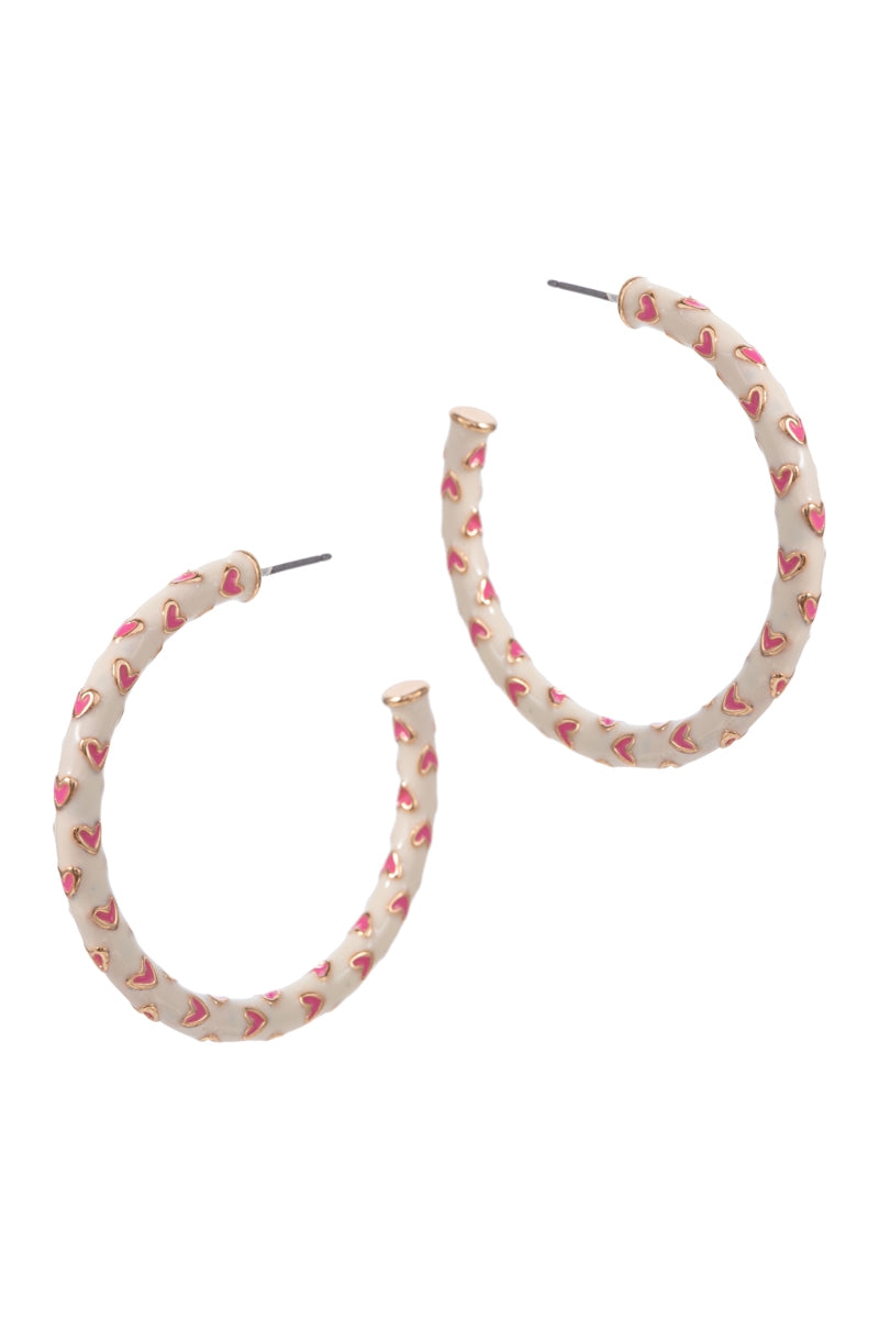 Valentines Day Heart Pattern Enamel Hoop Earrings