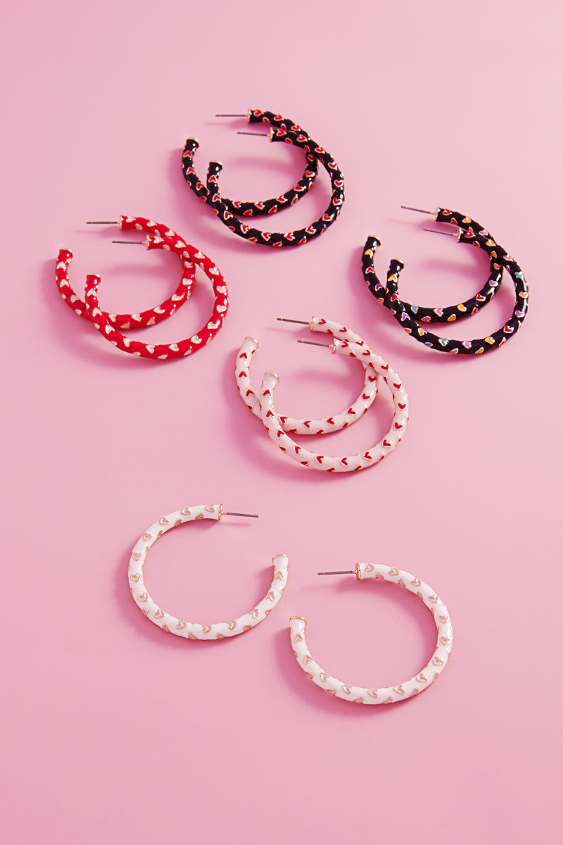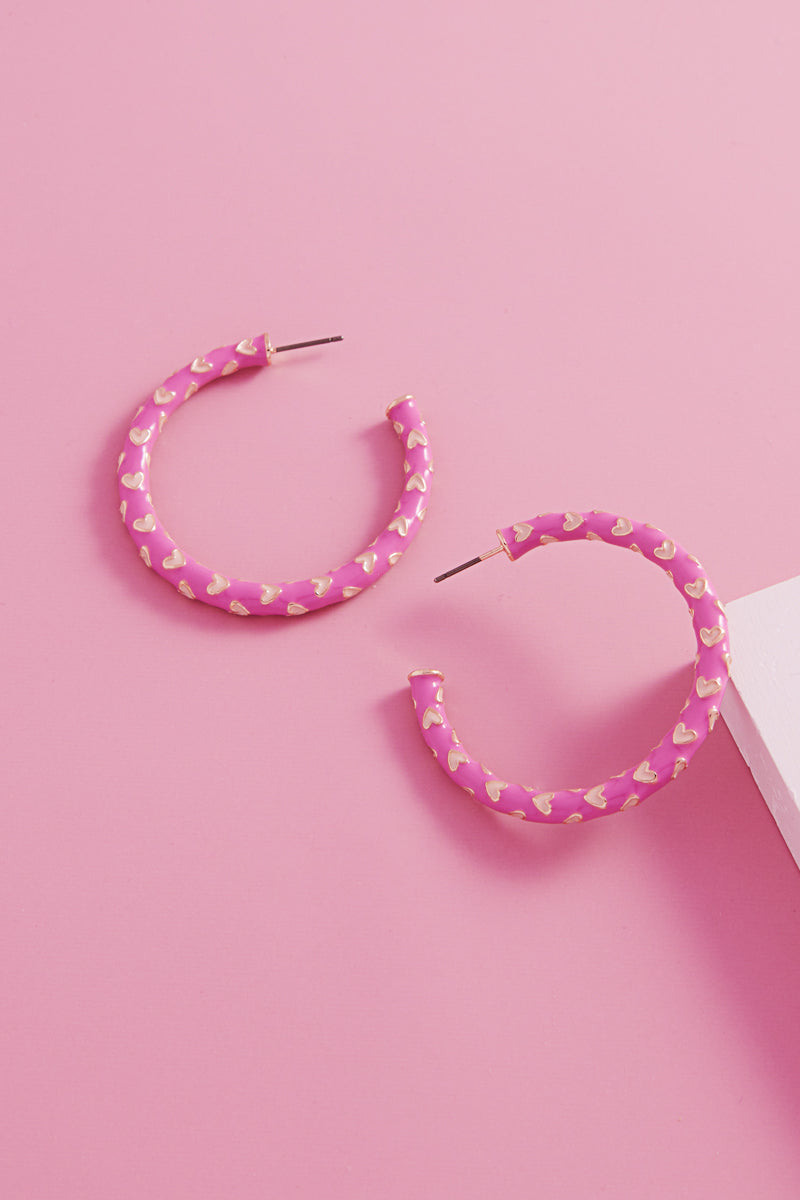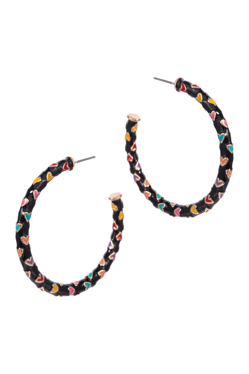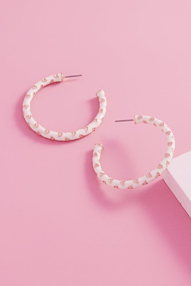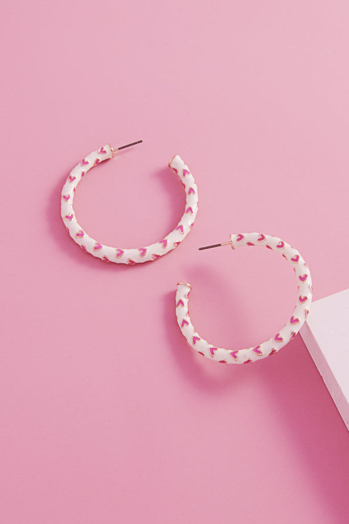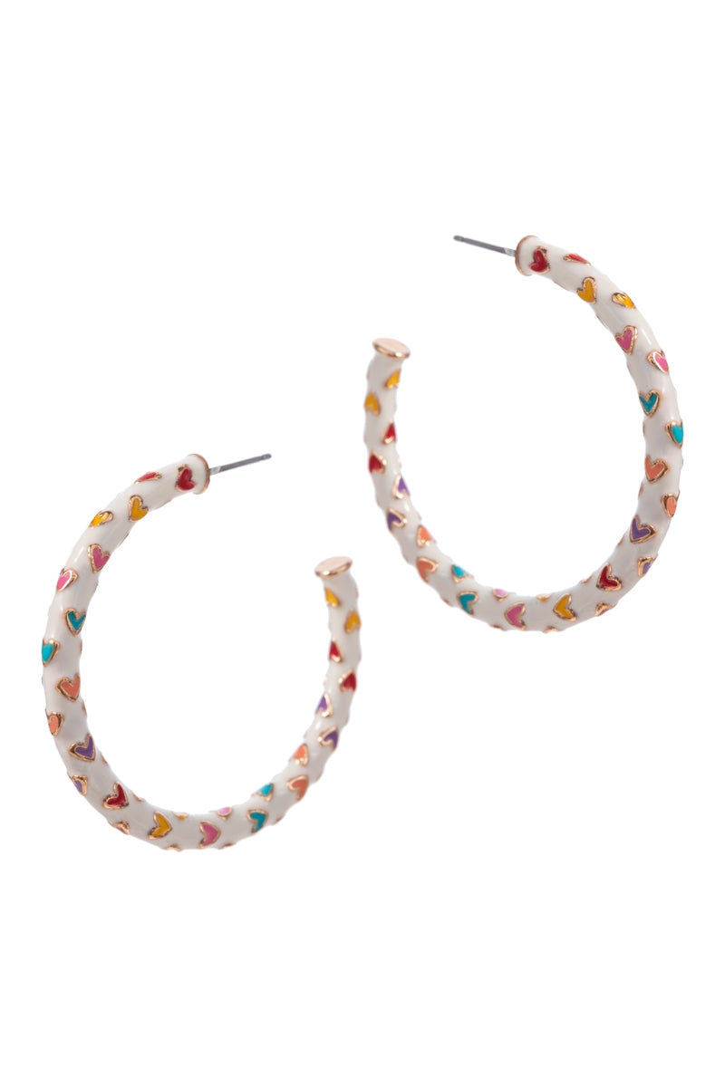 Valentines Day Heart Pattern Enamel Hoop Earrings