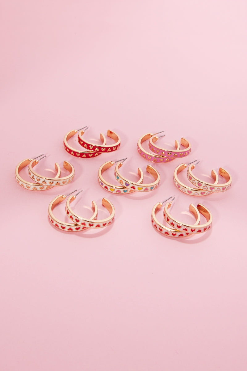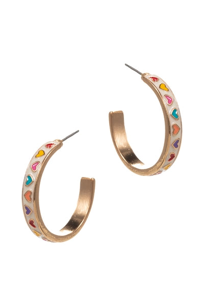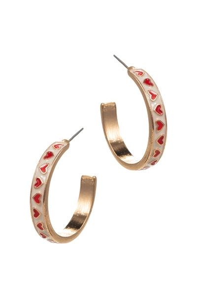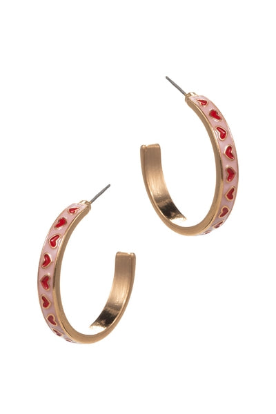 Valentines Day Heart Pattern Enamel Hoop Earrings