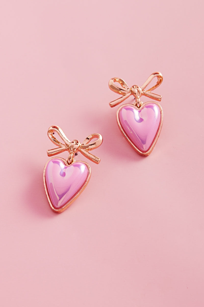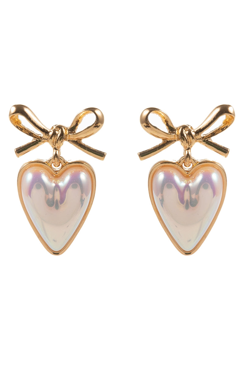 Valentines Day Heart Pearl Titanium Post Earrings
