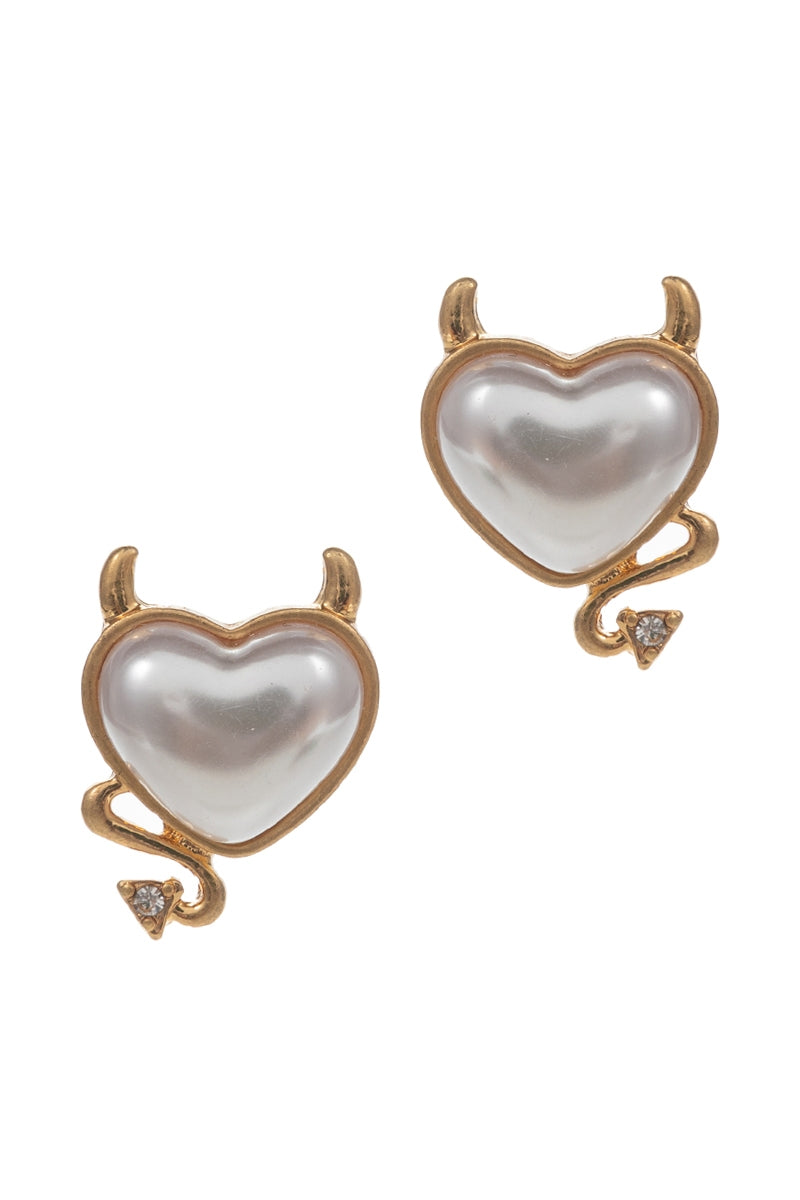 Valentines Day Heart Pearl W Devil Post Earrings