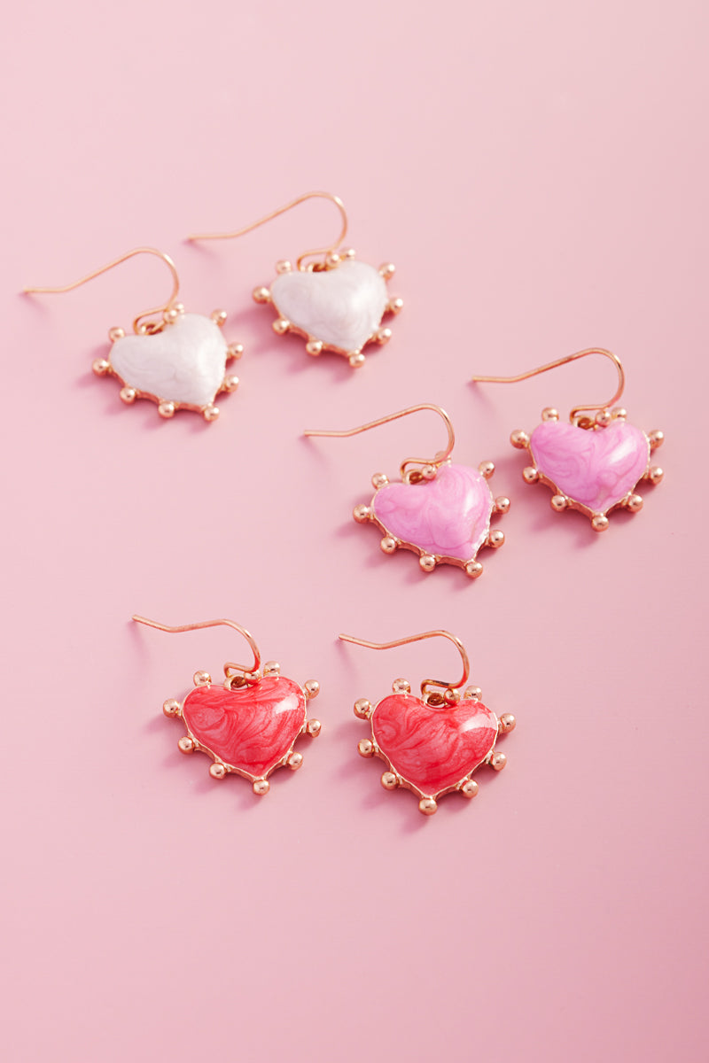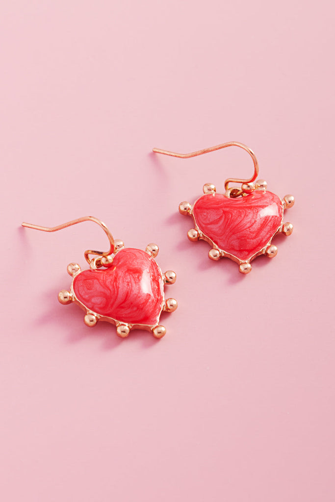 Valentines Day Heart Pearlize Enamel Hook Earrings