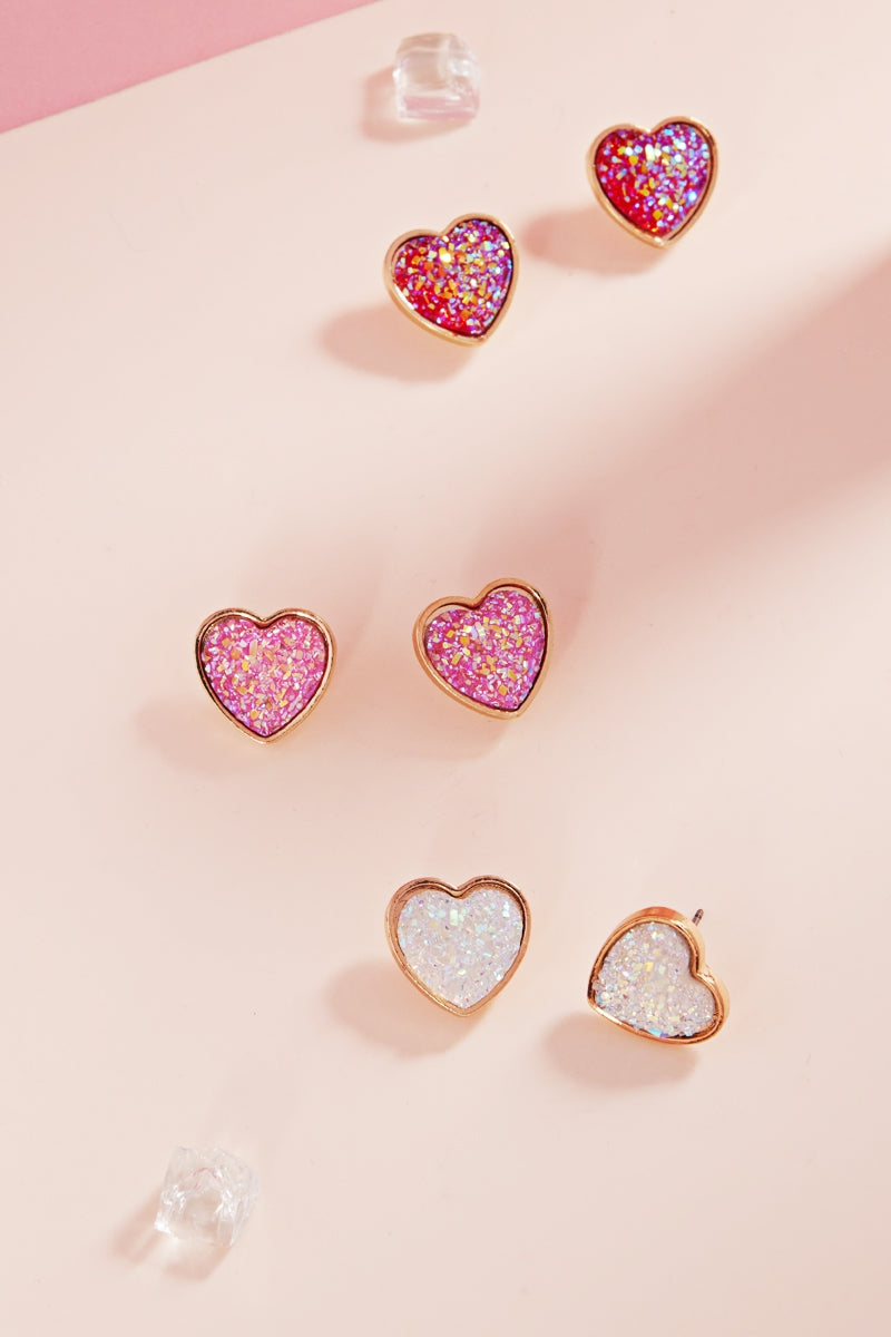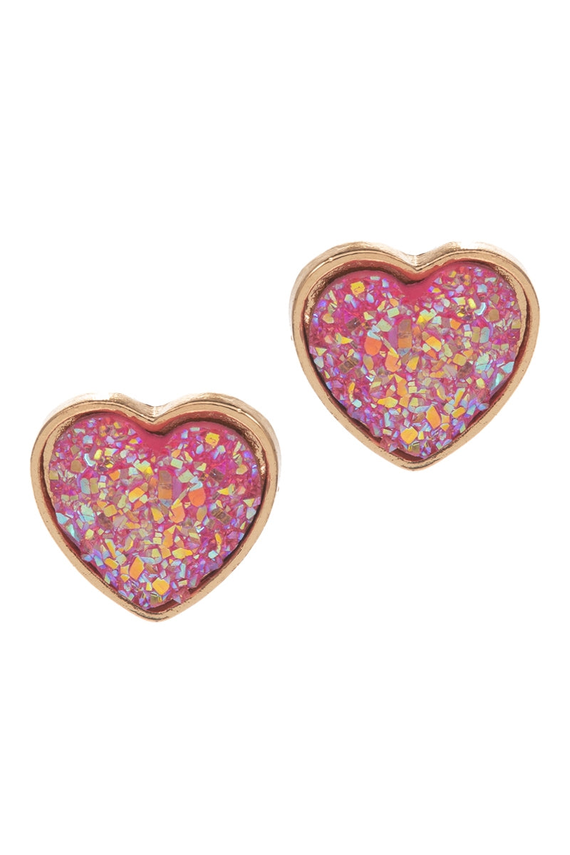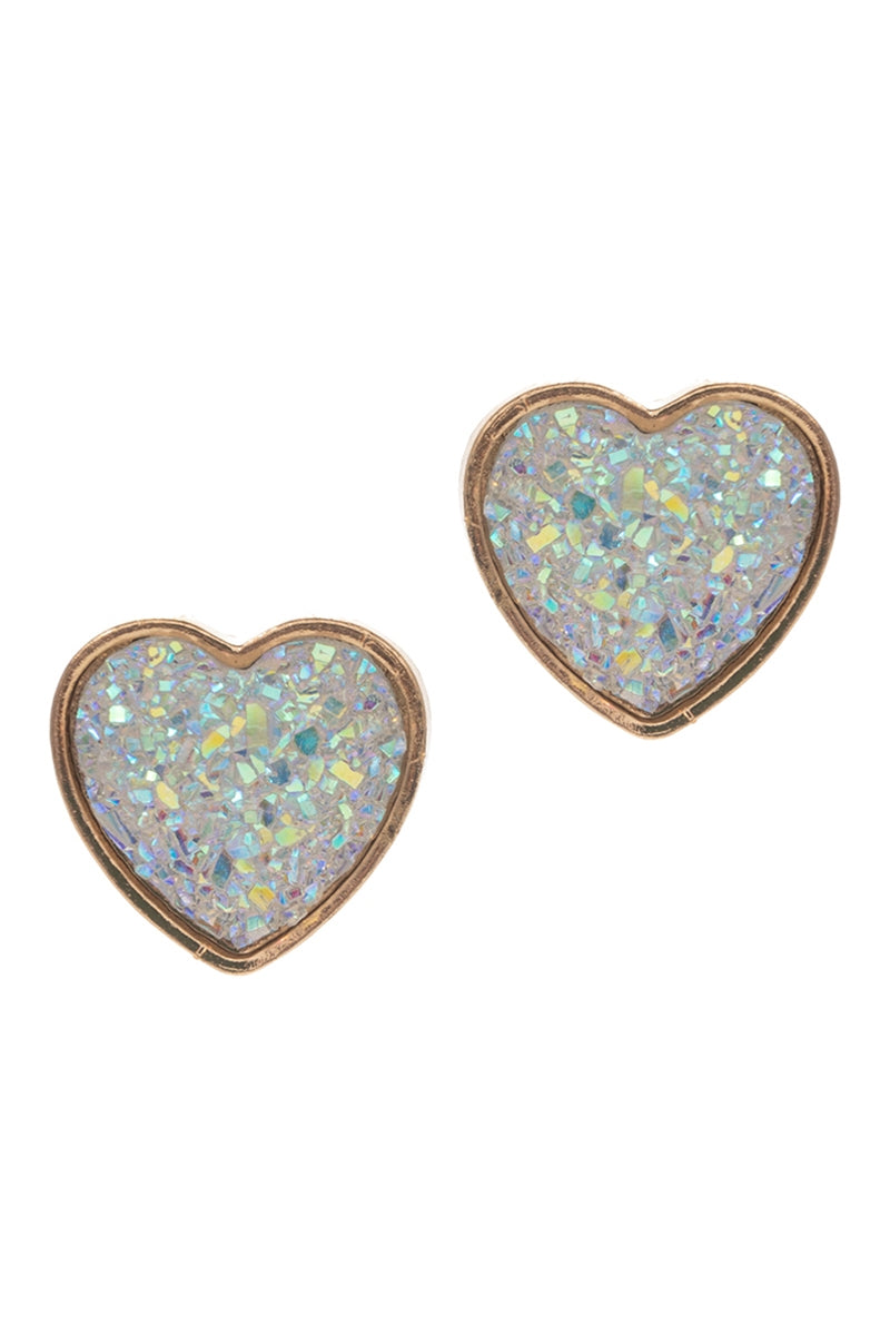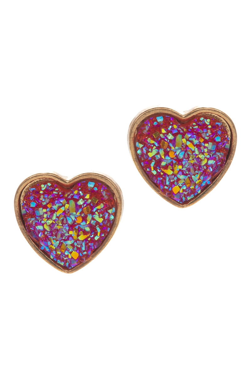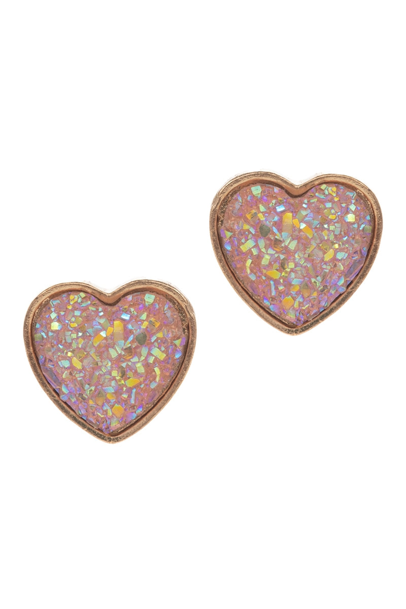 Valentines Day Heart Shaped Druzy Post Earrings