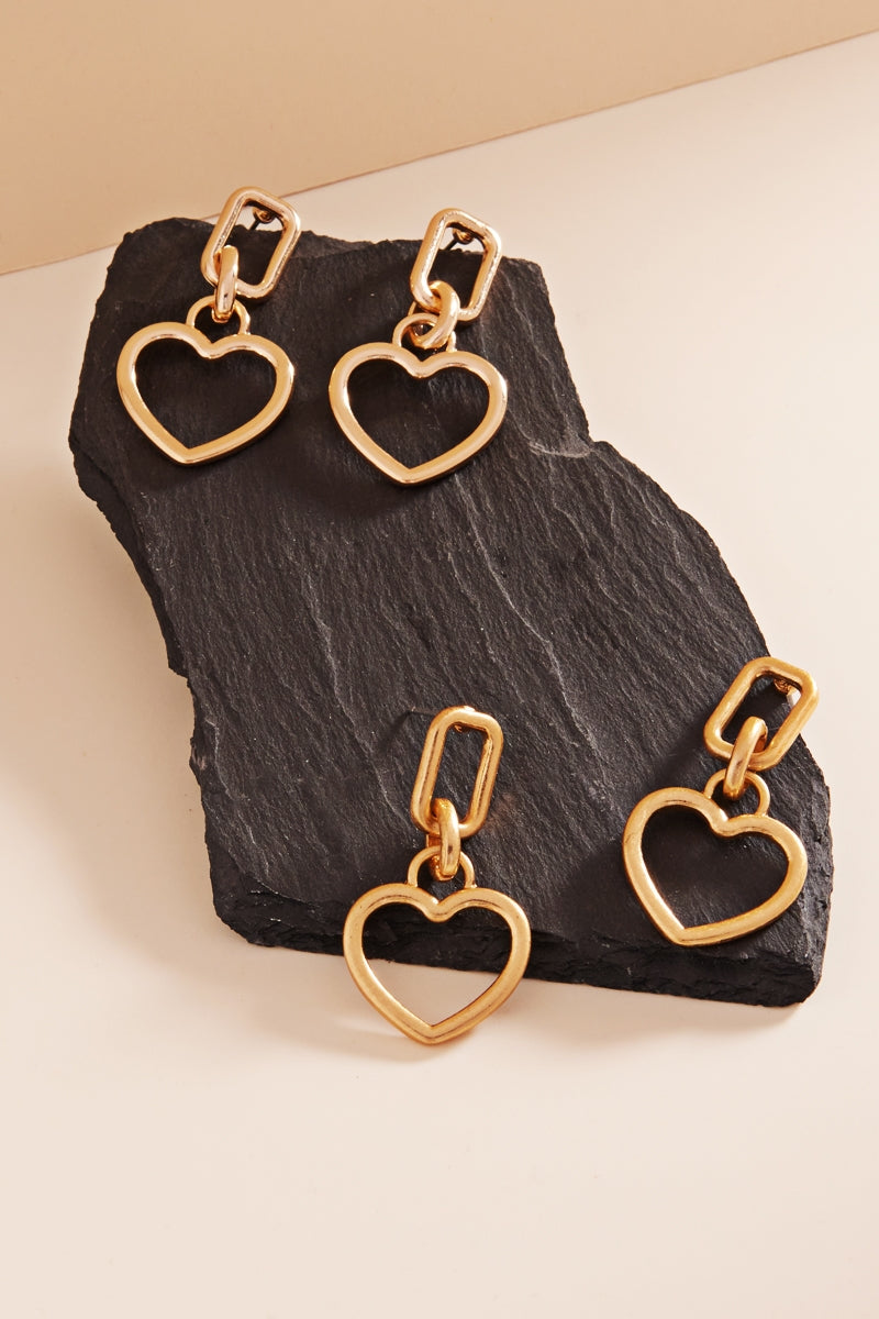 Add a touch of elegance to your outfit with our 1.75 inch heart-shaped metal post earrings. Made with quality materials, these earrings are perfect for any occasion. The subtle design and lightweight feel make them comfortable to wear, while the sturdy metal posts ensure durability. Elevate your style with these beautiful earrings.