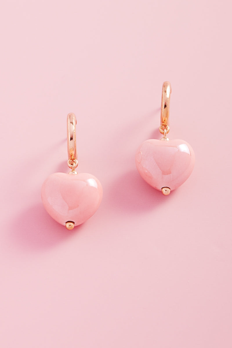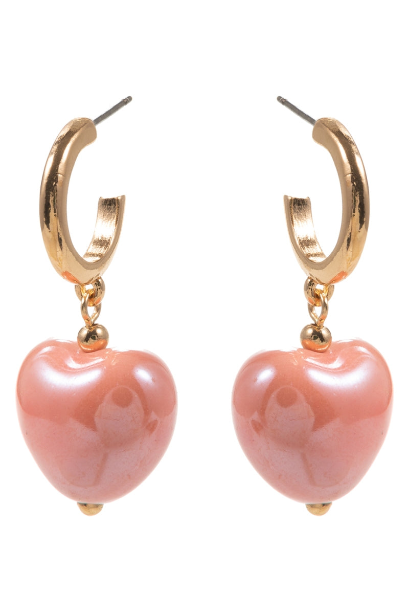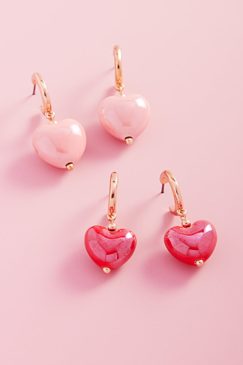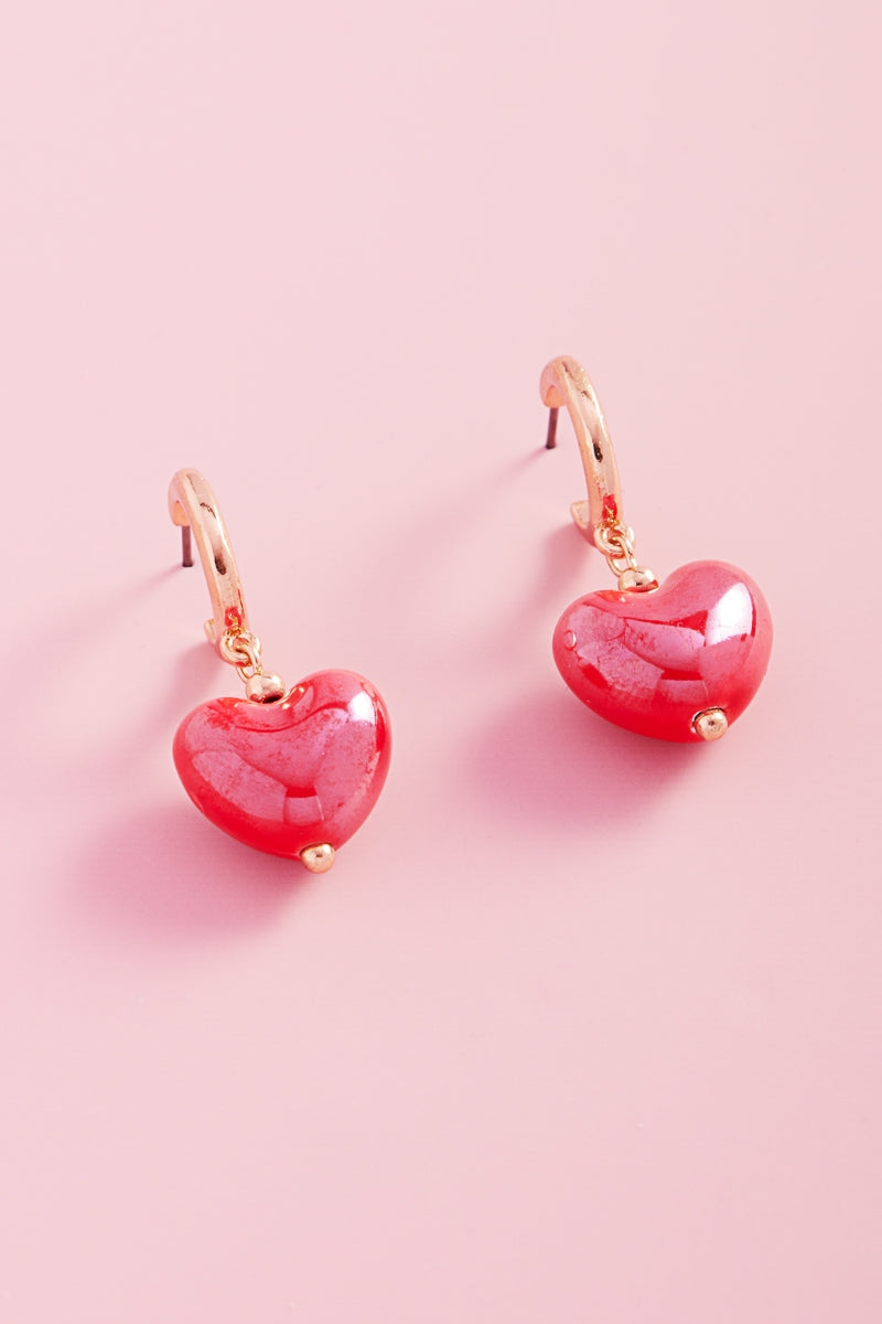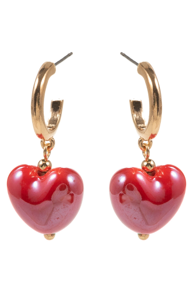 Valentines Day Heart Shiny Bead Hoop Earrings