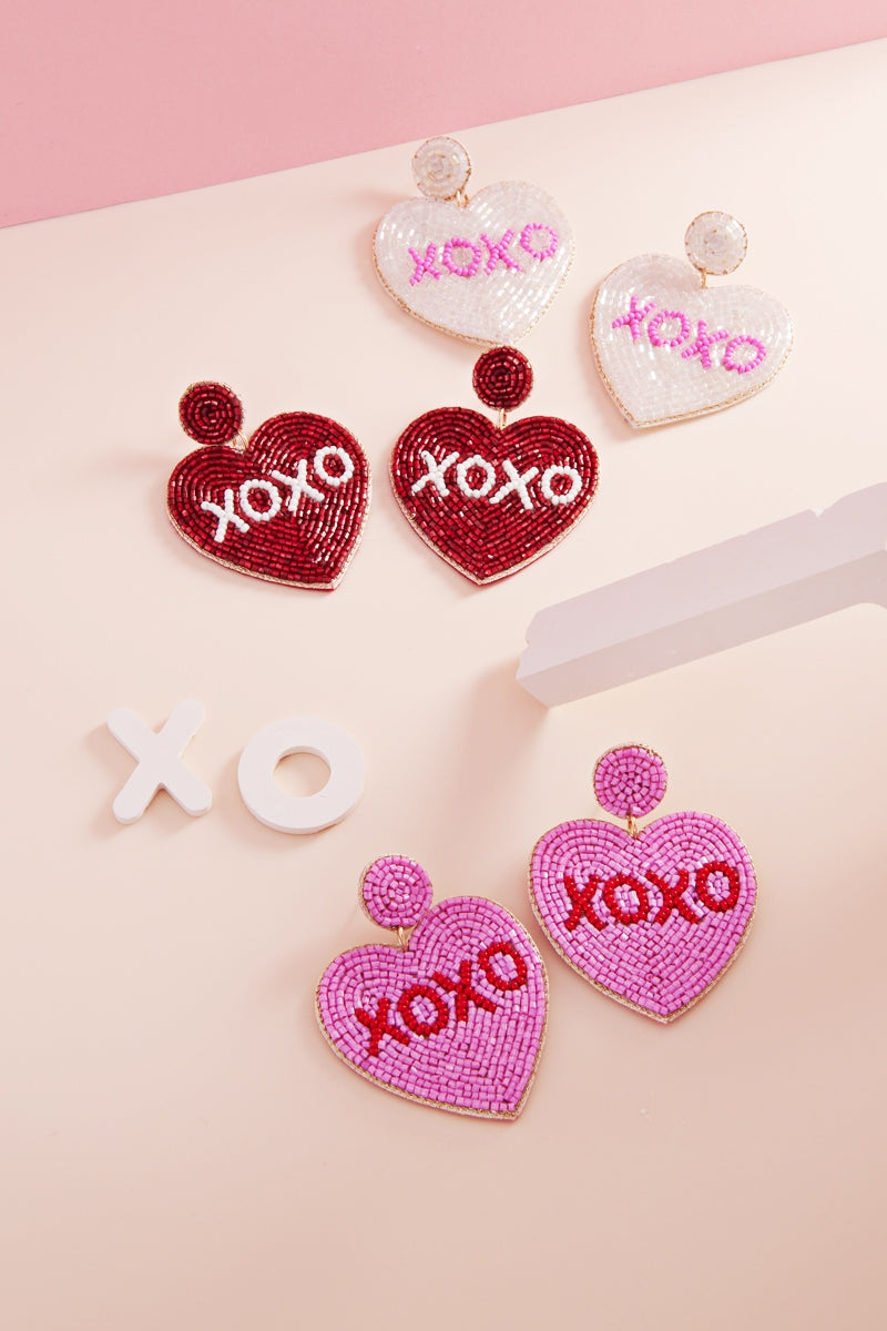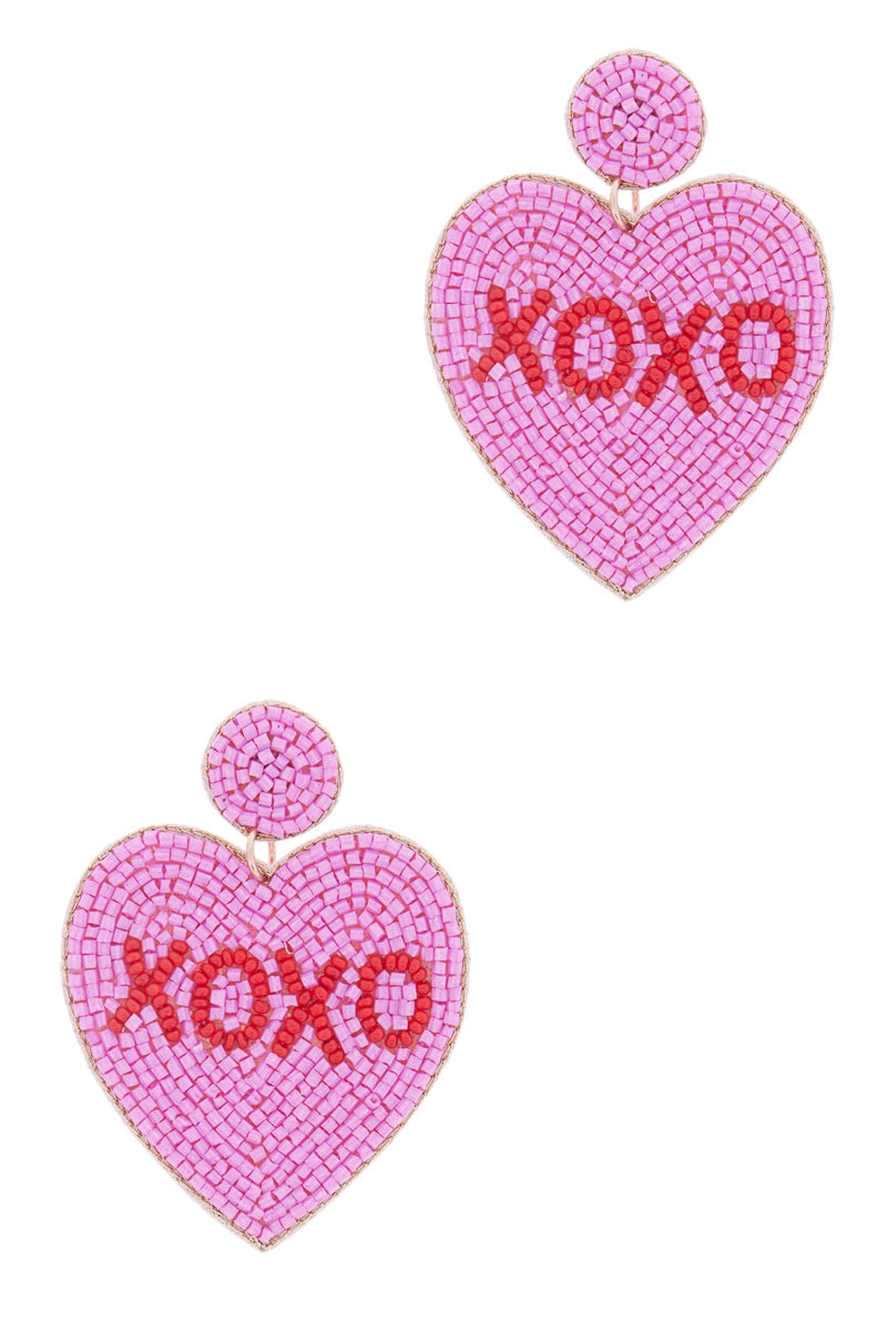 Valentines Day Heart Xoxo Seed Bead Post Earrings