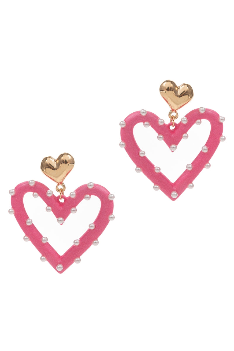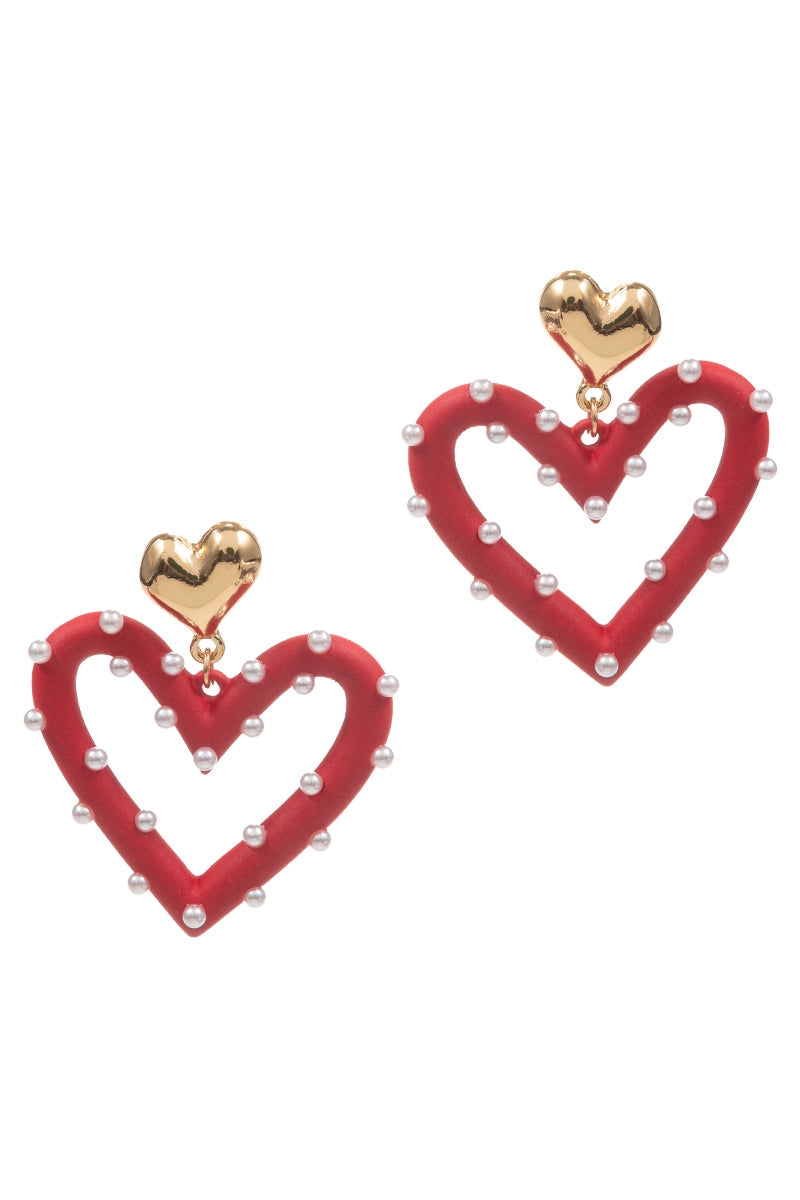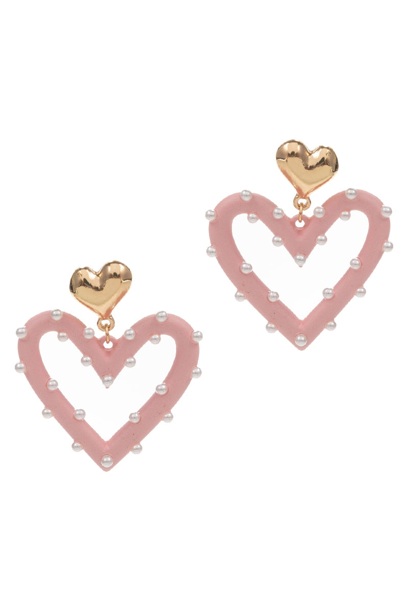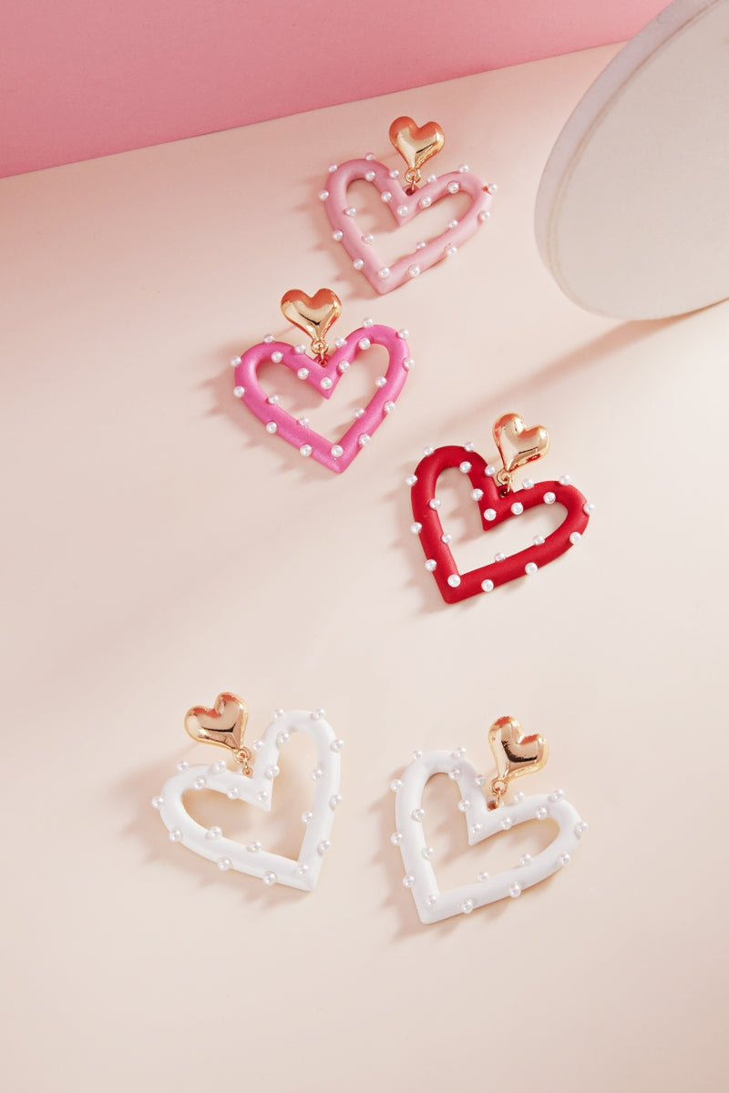 Valentines Day Pearls 2 Drop W Heart Post Earrings