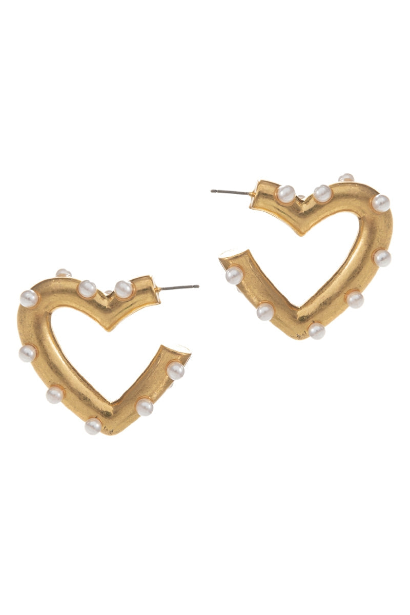 Valentines Day Pearls Heart Metal Hoop Earrings