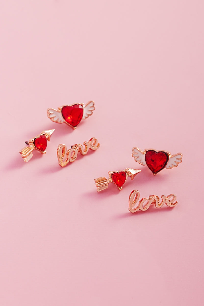 Valentines Days Icon Shaped 3 Set Post Earrings