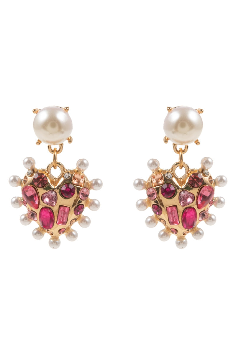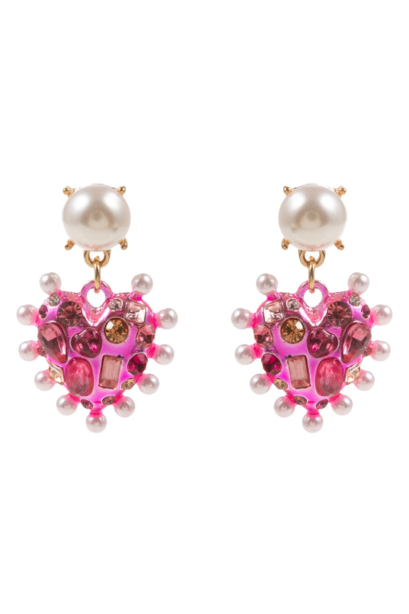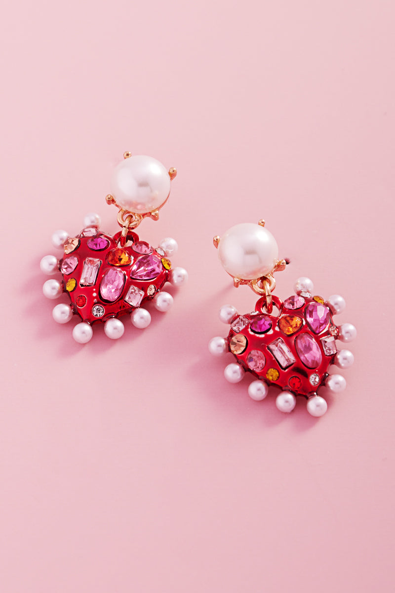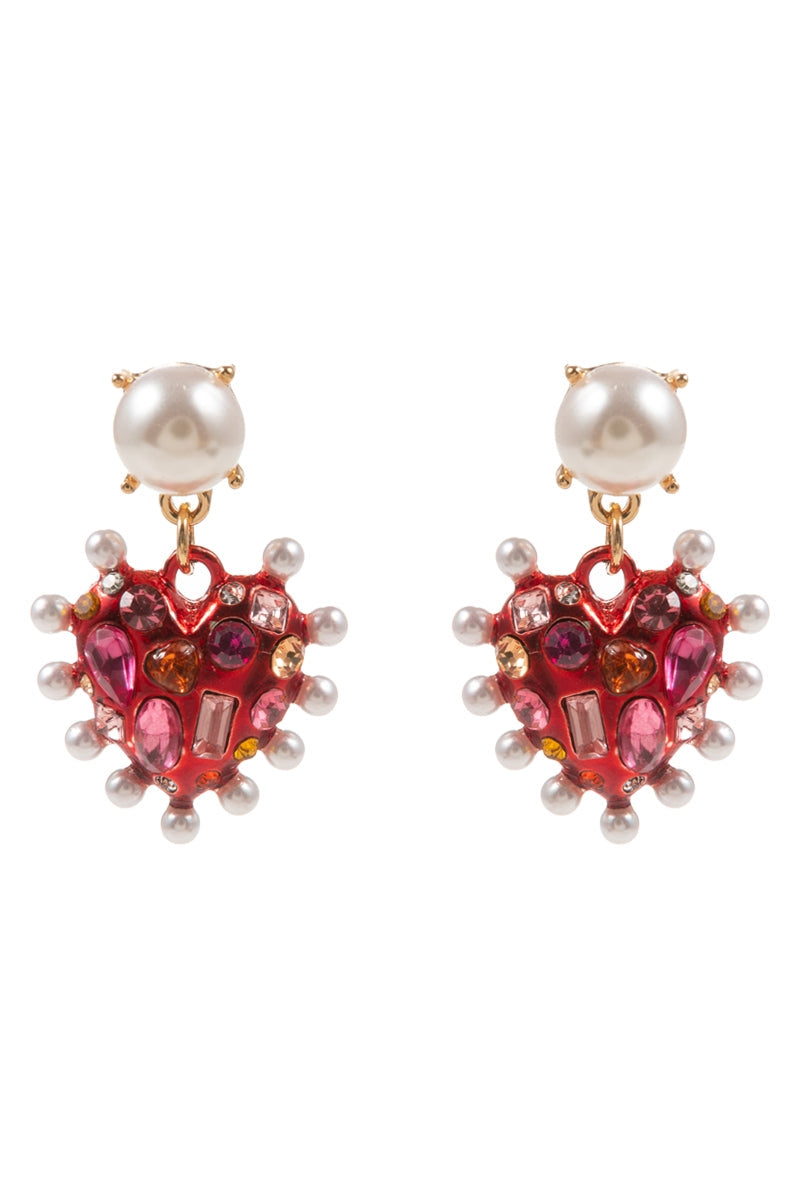 Valentines Heart Metal Stone Pearl Post Earrings