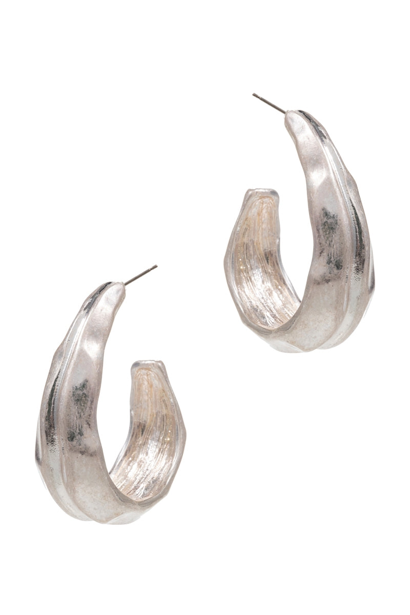 Vintage Texutred Metal Titanium Pin Hoop Earrings
