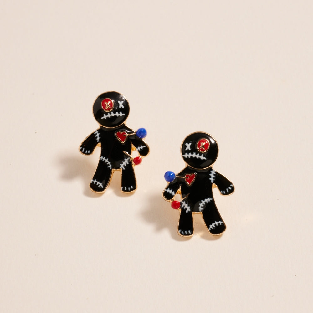 Voodoo Doll Enamel Post Earrings Jewelry Halloween