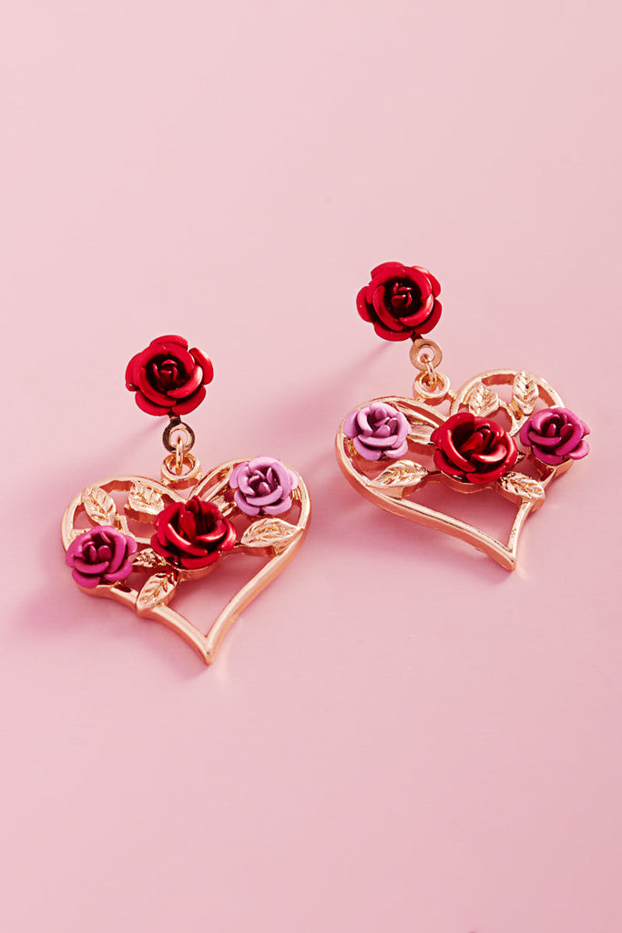 Valentines Day Heart Vinatge Metal Hoop Earrings