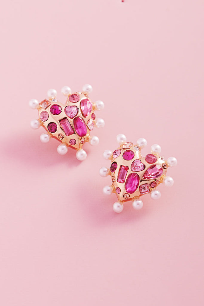 Valentines Day Heart Pearl Cabochon Post Earrings