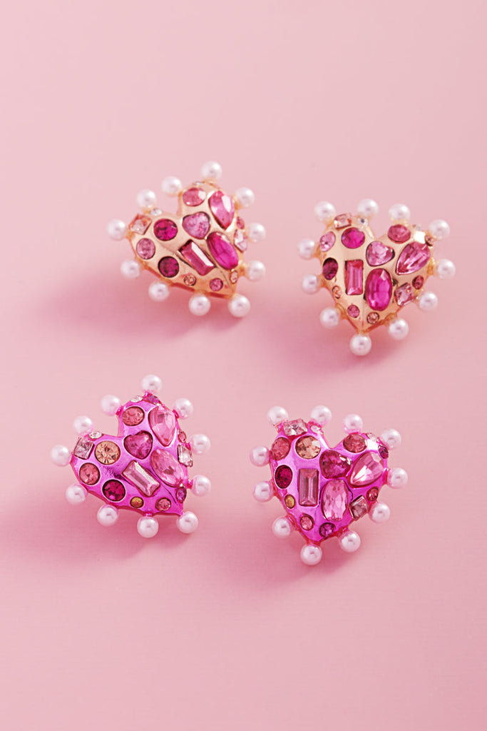 Valentines Day Heart Pearl 3 Set Post Earrings