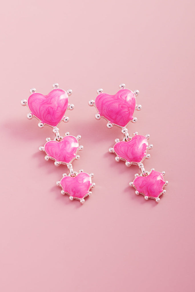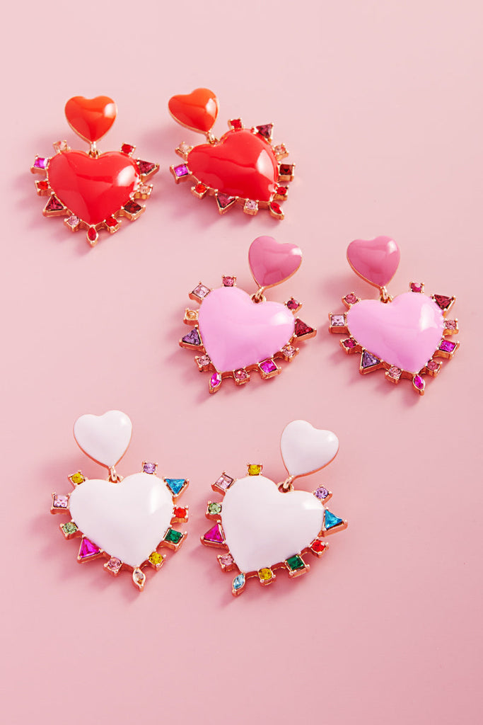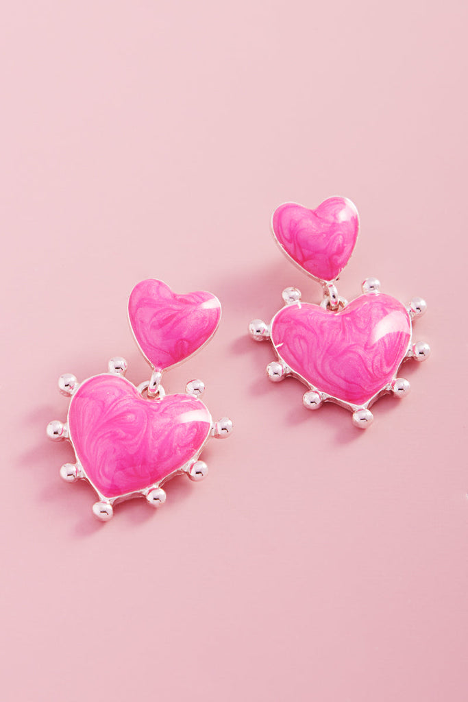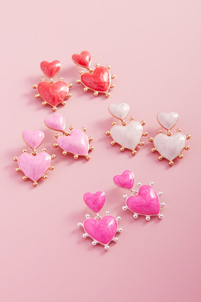 Valentines Day Two Drop Enamel Heart Post Earrings