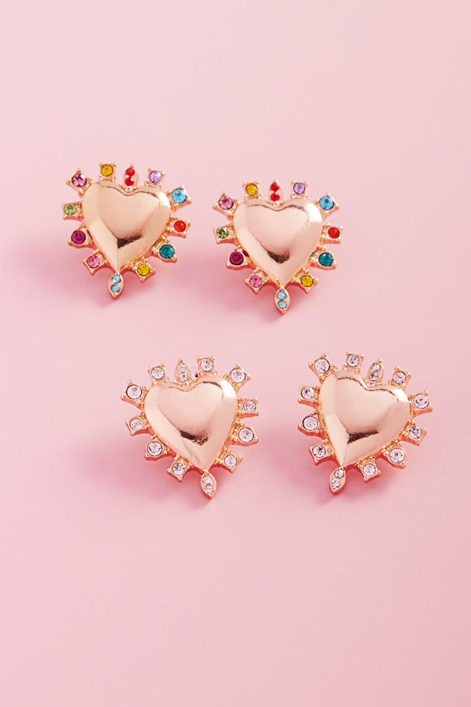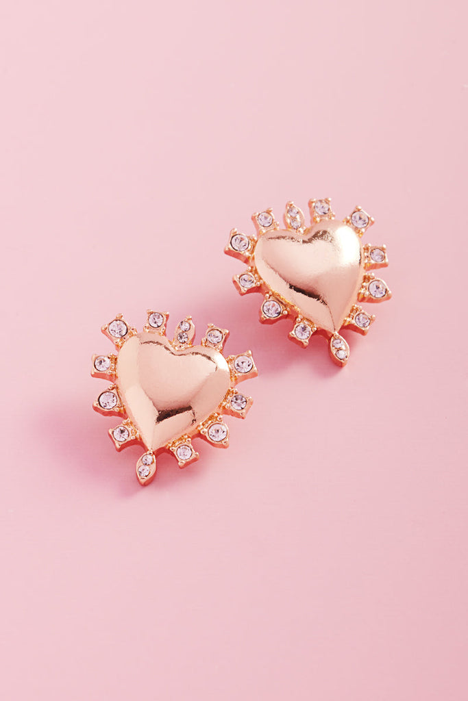 Valentines Heart Metal W Rhine Stone Post Earrings
