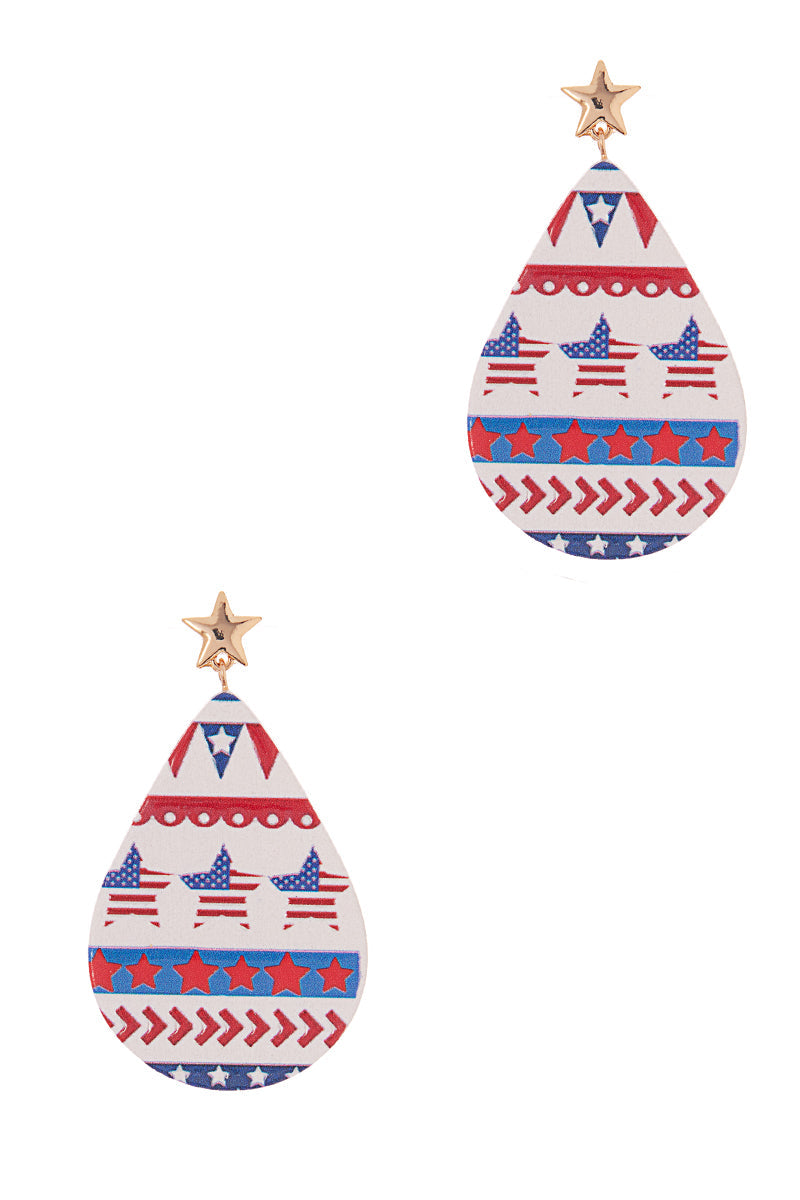 American Flag Tear Drop Shaped Wood Hook Earrings
