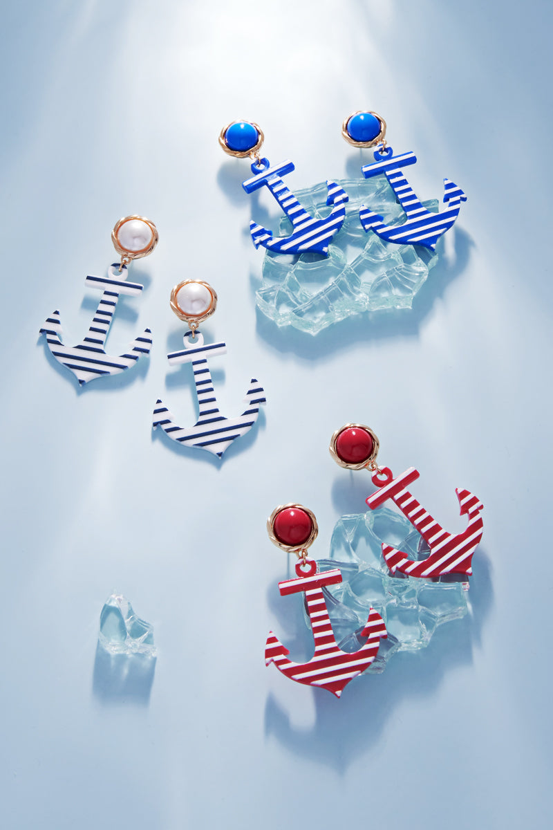 Introducing our latest 2.5 inch anchor shaped sealife pattern printed post earrings. Made with high-quality materials, these earrings are perfect for adding a touch of nautical charm to any outfit.