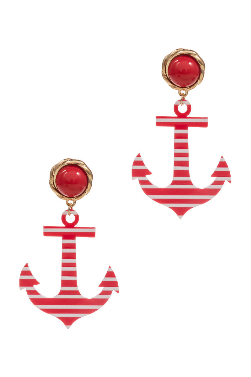 Anchor Shape Sea Life Pattern Summer Post Earrings