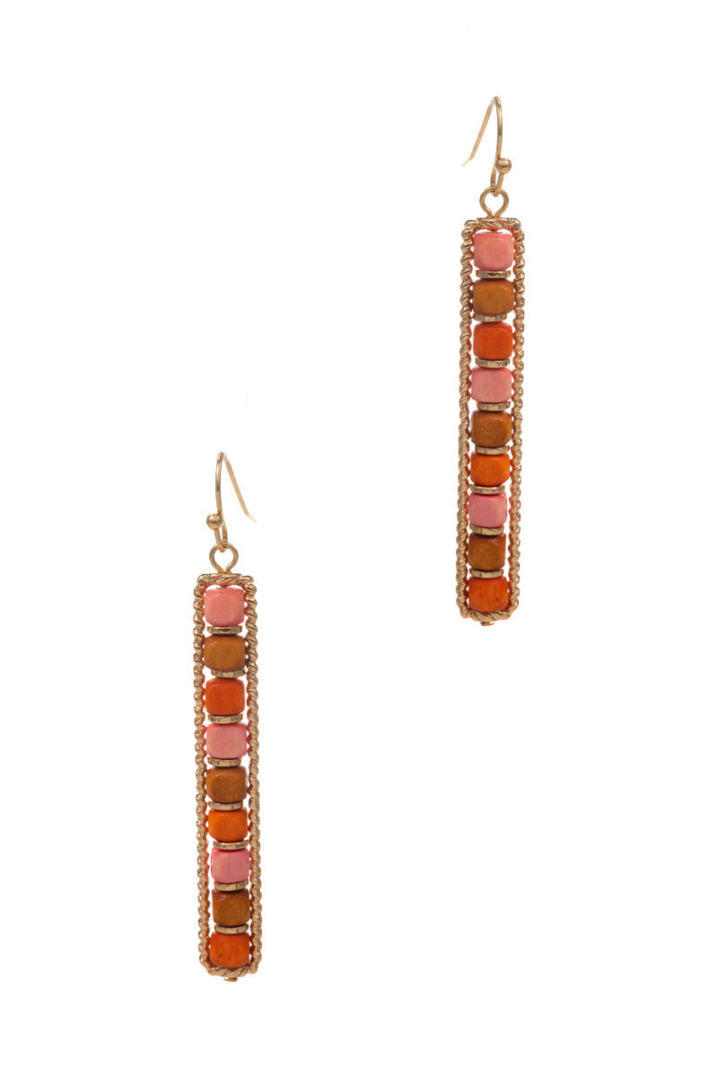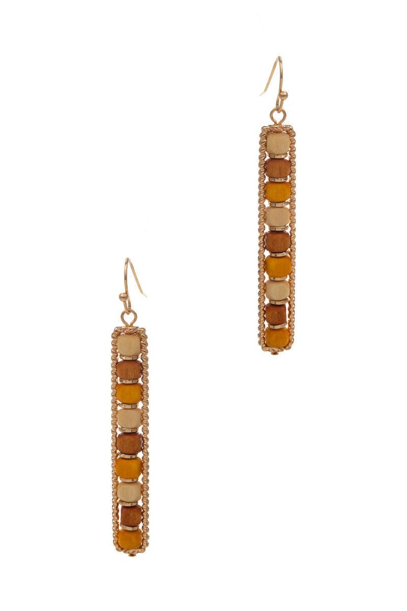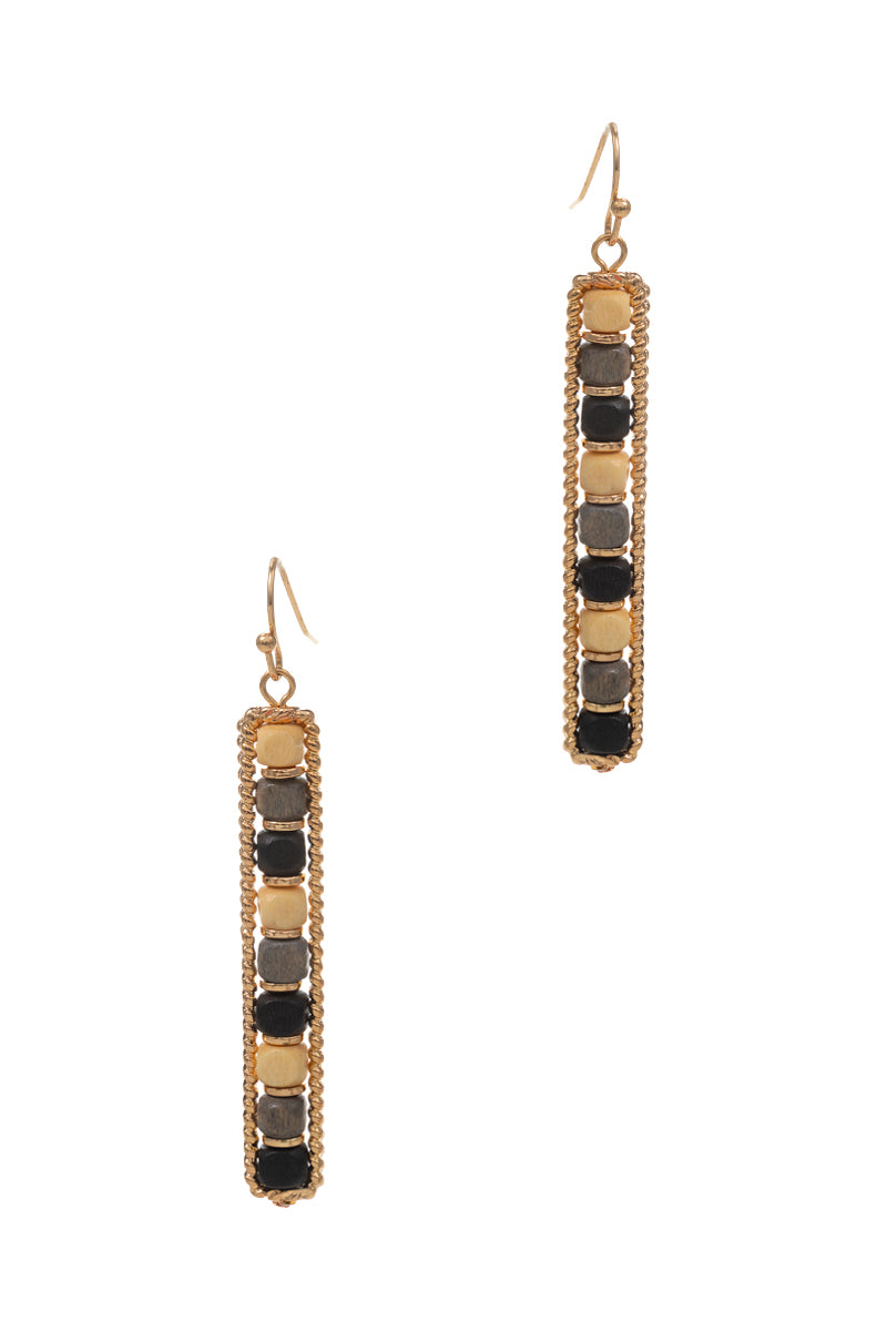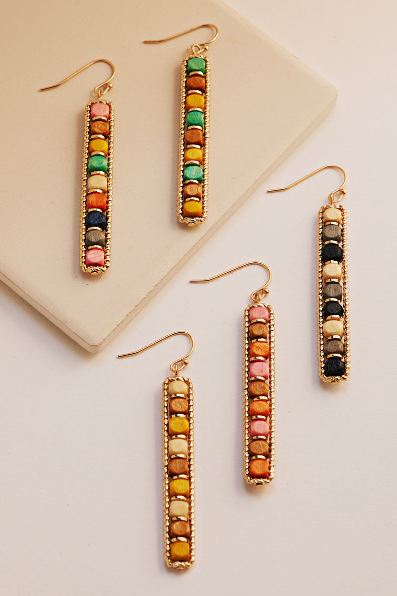 Bar Shaped Mixed Wood Bead Hook Earrings