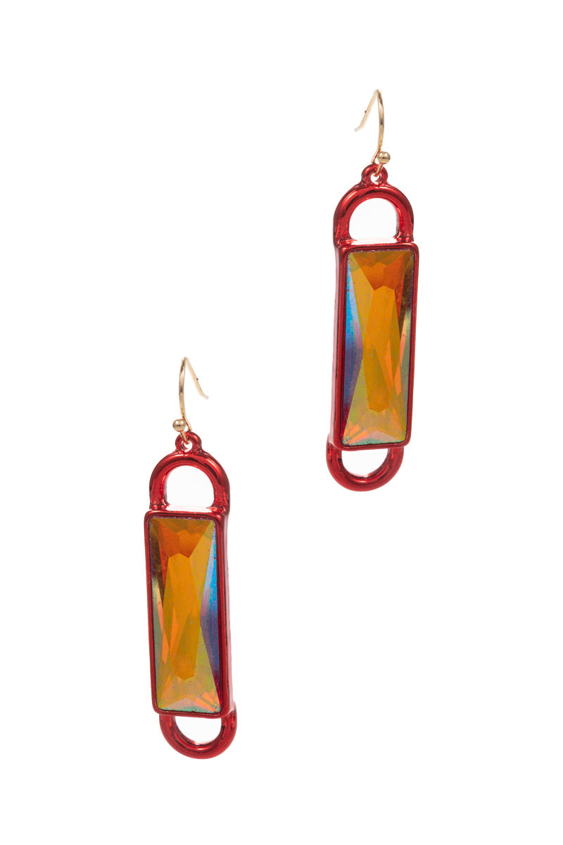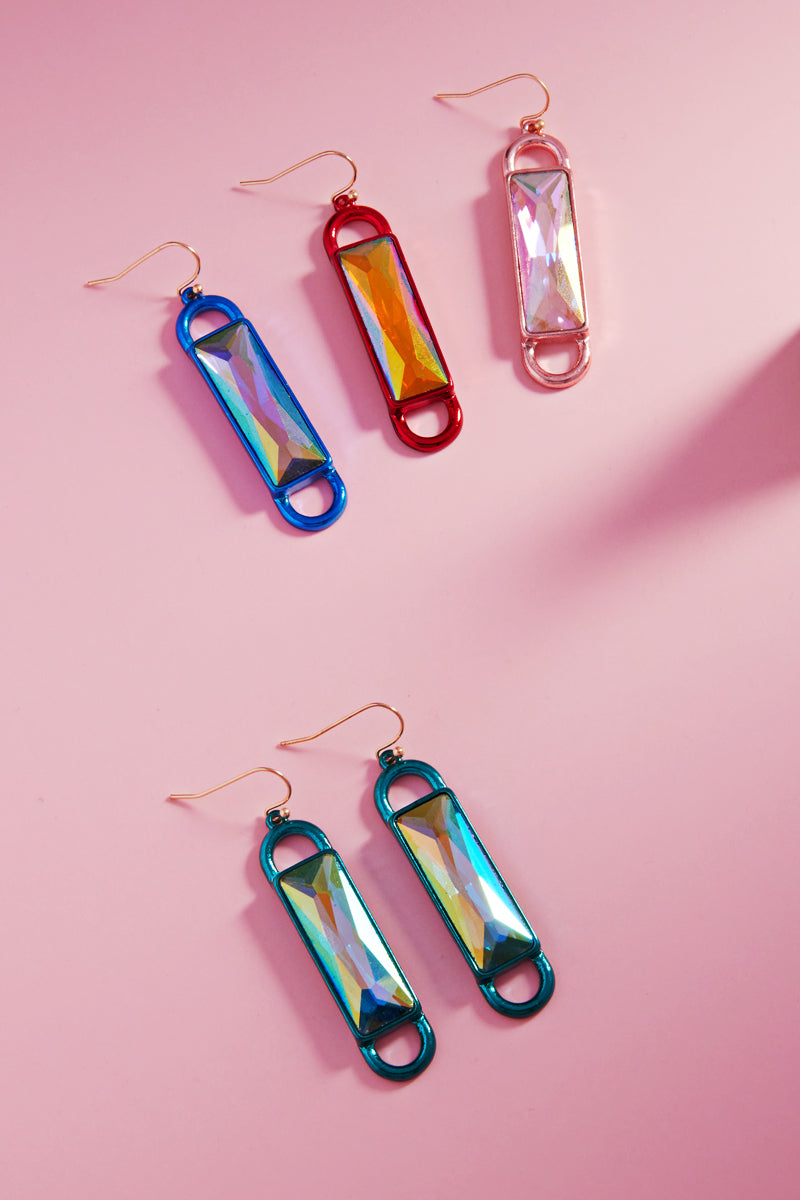 Bar Shaped Multicolored Rhine Stone Hook Earrings