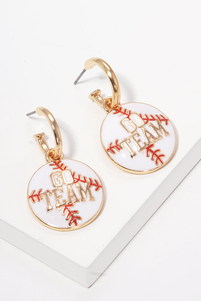 Baseball Enamel Game Day Hoop Earrings