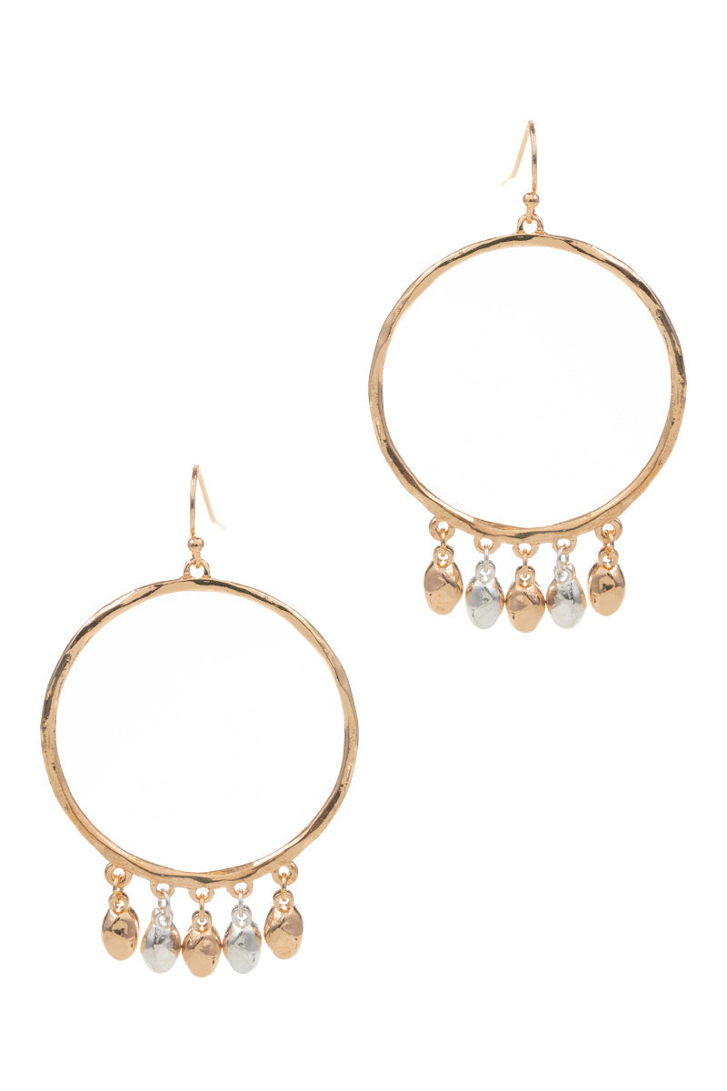 Introducing our 2.25 Inch Organic Shaped Metal Drop Frontal Round Hook ER. Crafted with precision, these earrings offer a unique organic design that will elevate any outfit.