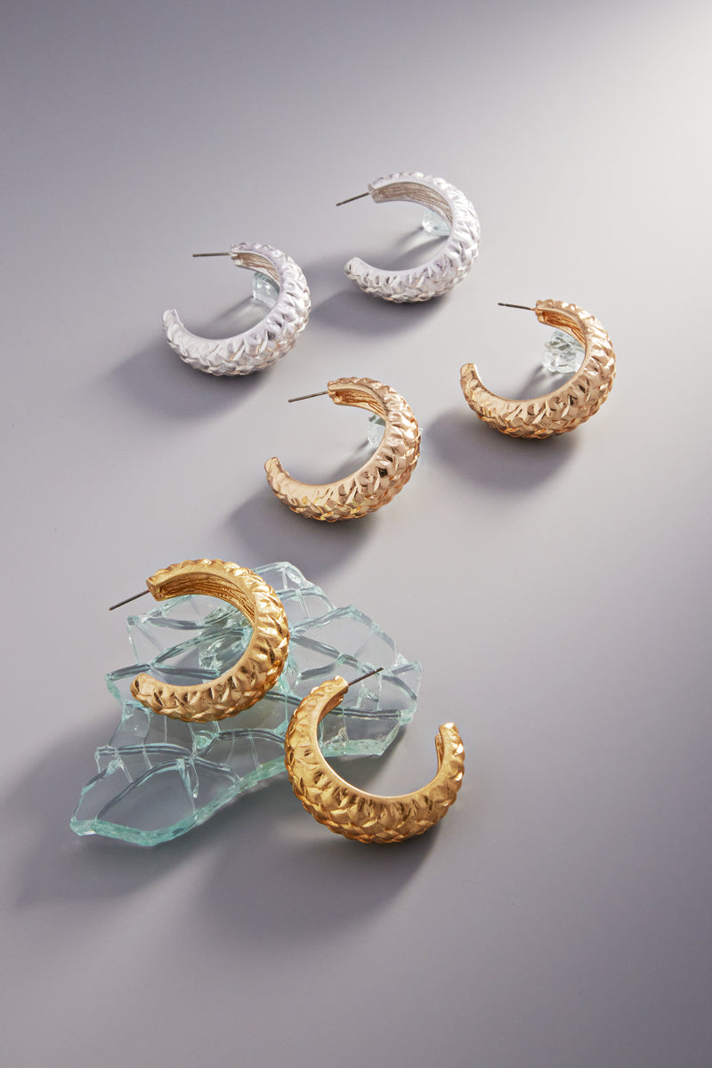 The unique textured design adds a touch of sophistication, while the titanium pin ensures safe wear for those with sensitivities.