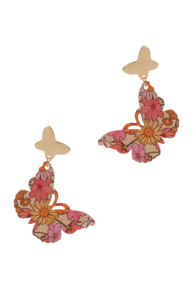 Add a touch of whimsy to your outfit with these 2-inch butterfly printed post earrings. Crafted with precision and care, these earrings feature vibrant and intricate designs that will make a statement wherever you go.