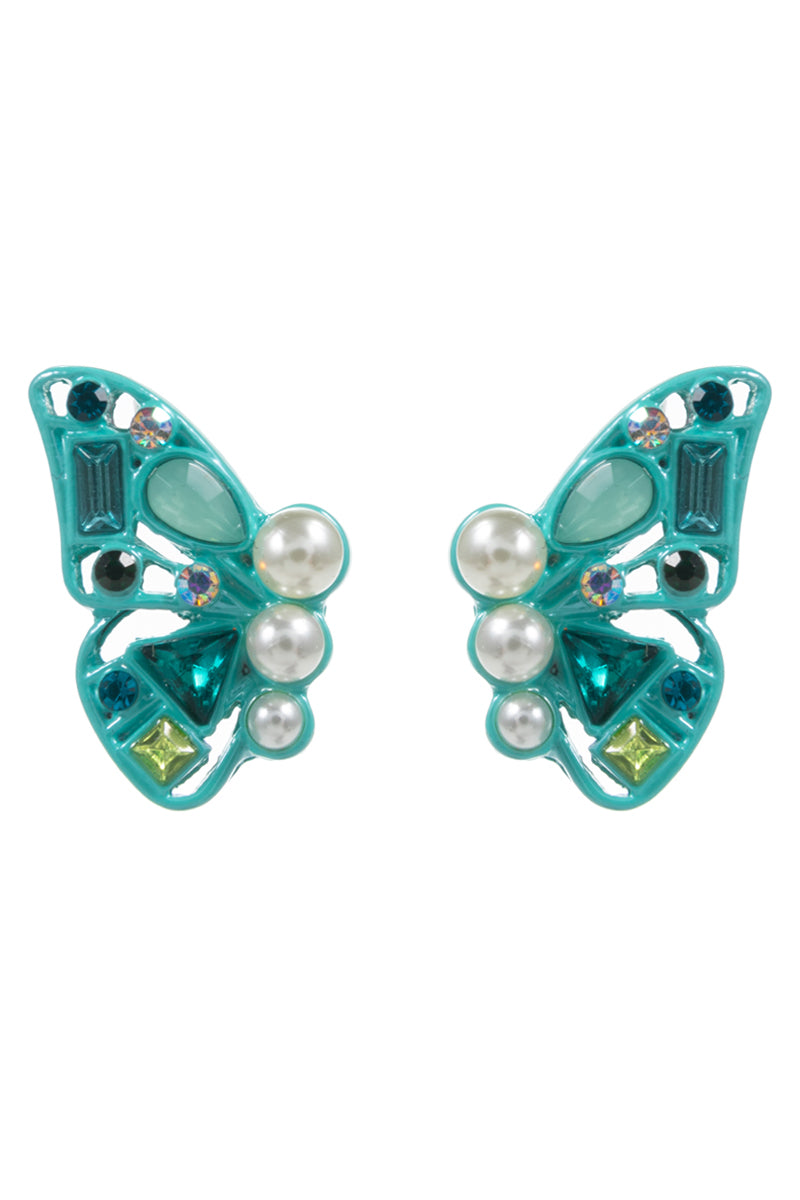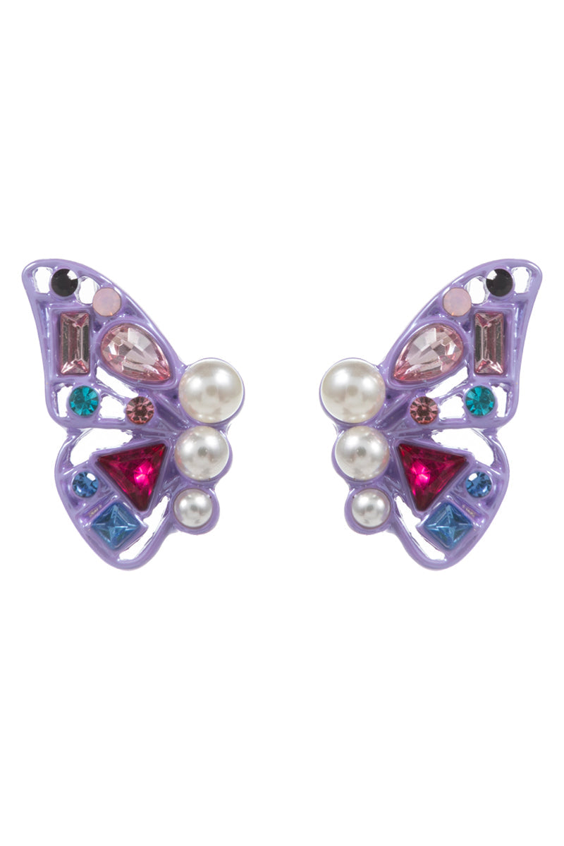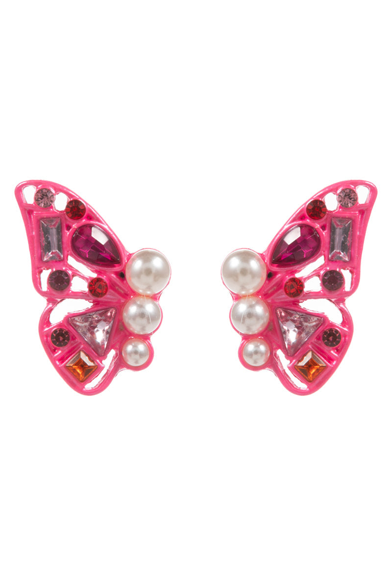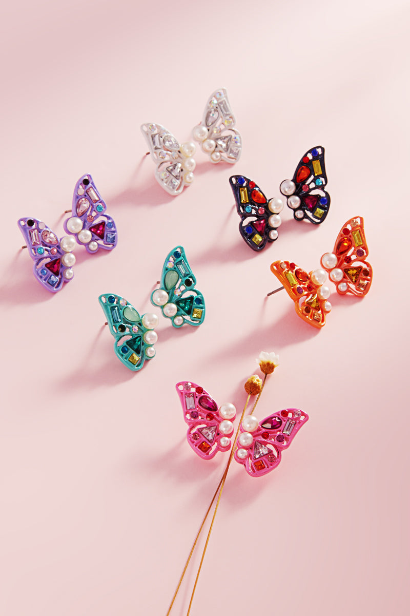 Butterfly Shiny Color Coating Stones Hoop Earrings