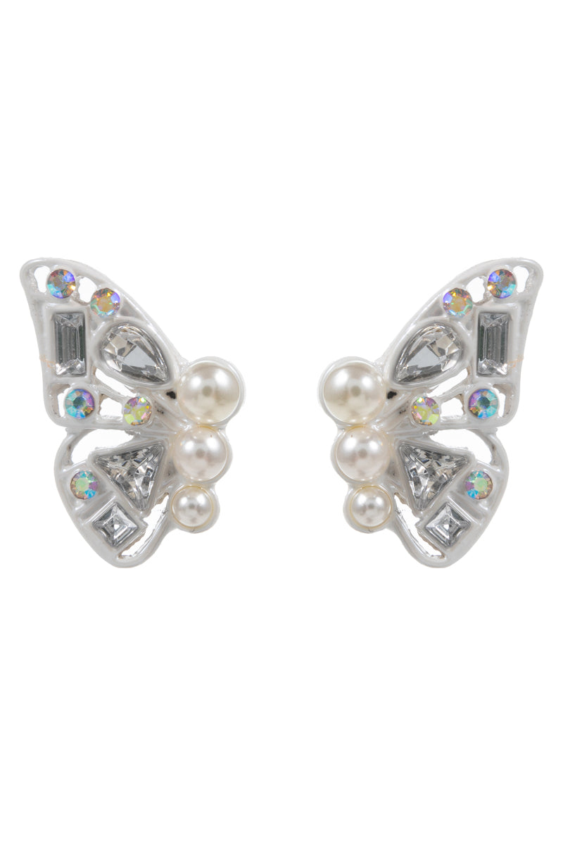 These butterfly-shaped hoop earrings add a unique touch to any outfit. Made with a 1 inch diameter and coated with a shiny finish, they are adorned with sparkling stones for added elegance. Perfect for any occasion, these earrings are a must-have for your jewelry collection.