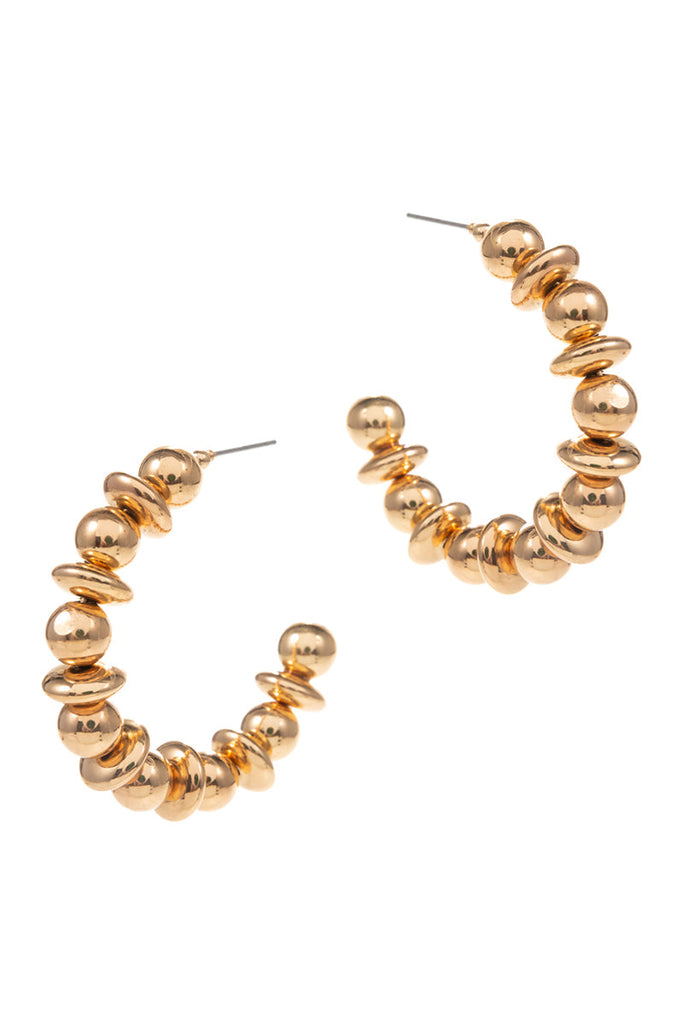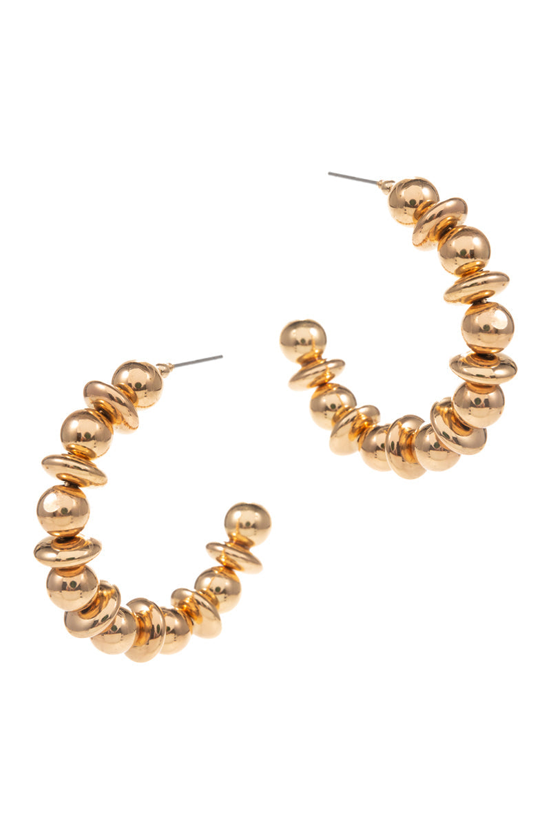 These 1.75 inch C shaped metal bead round hoop earrings are stylish and versatile. The unique C shape adds a modern twist to the classic design, while the metal beads give a touch of elegance.