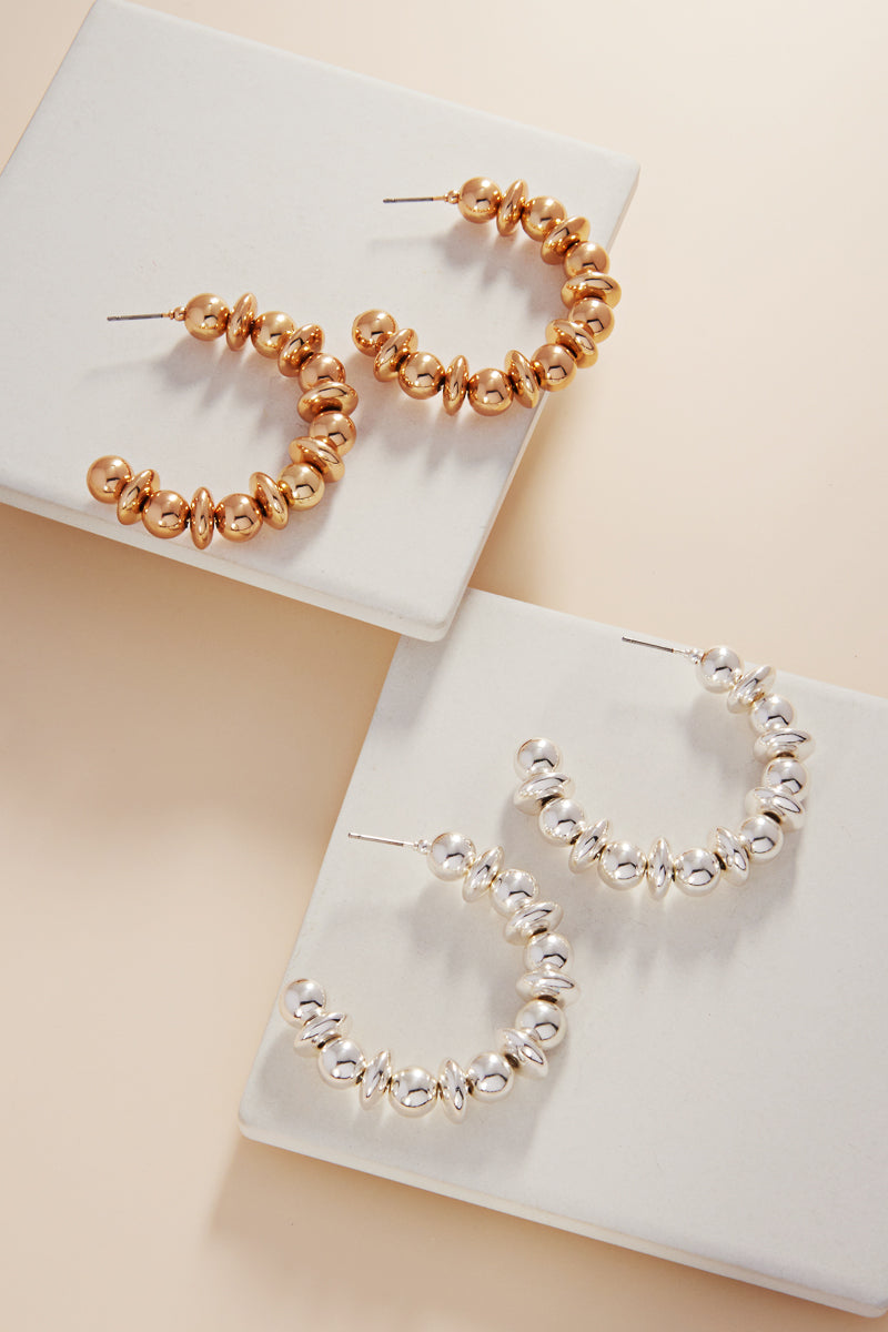 C Shaped Basic Metal Bead Round Hoop Earrings