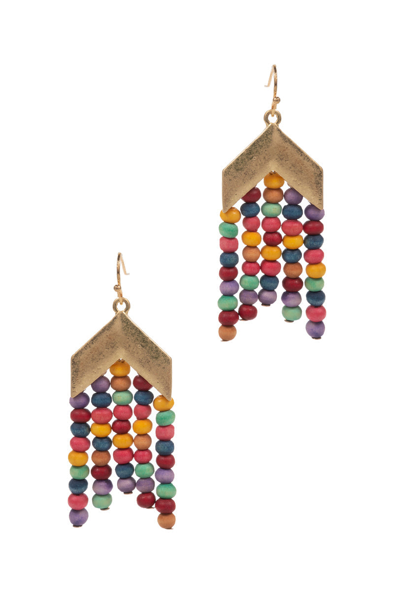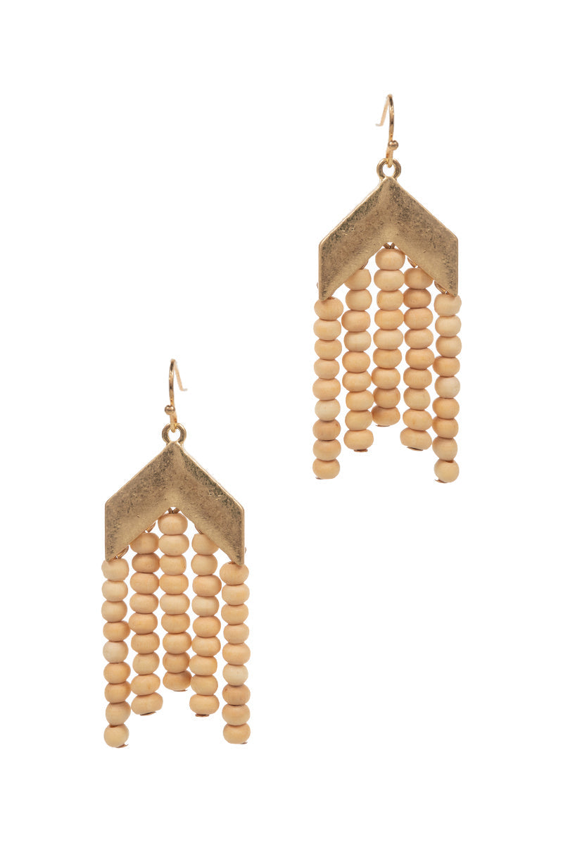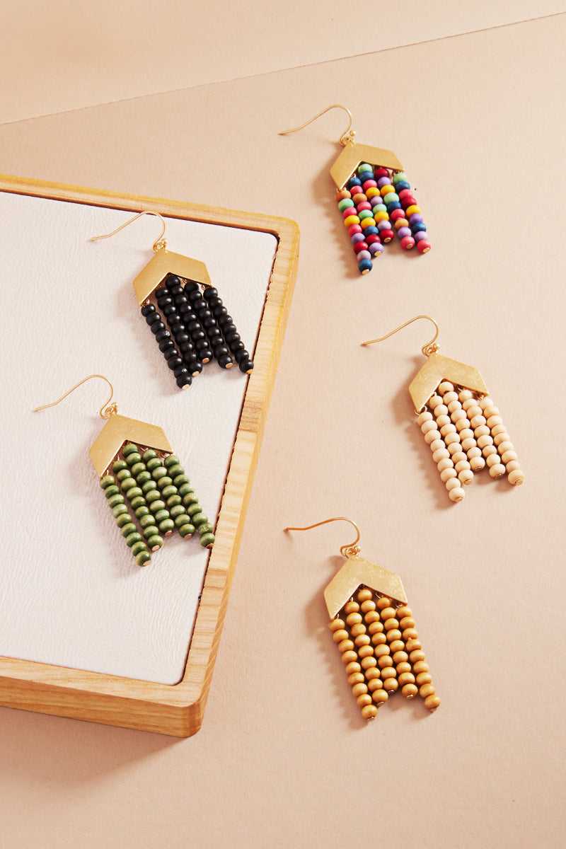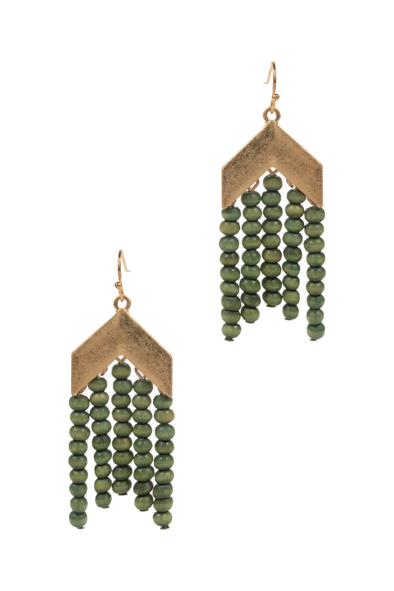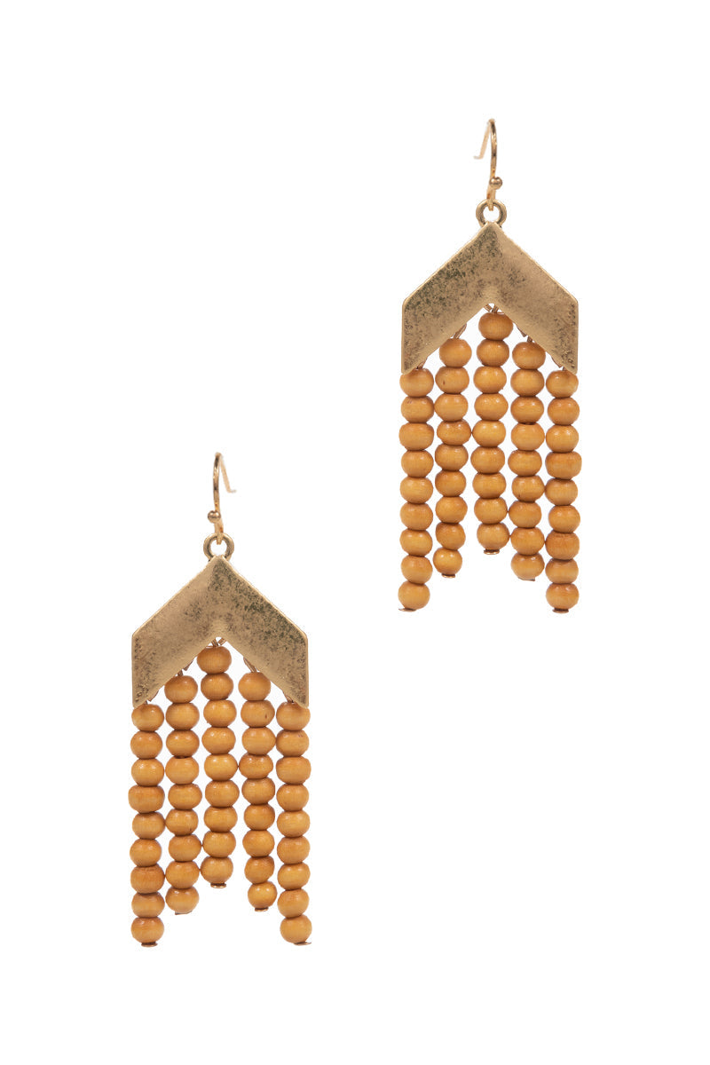 Chevron Shaped Wood Bead Tassel Hook Earrings