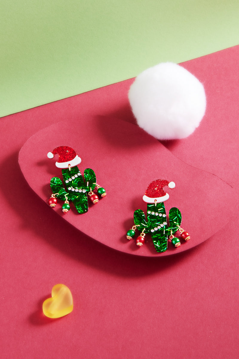 Christmas Cactus Tree Glitter Resin Post Earrings