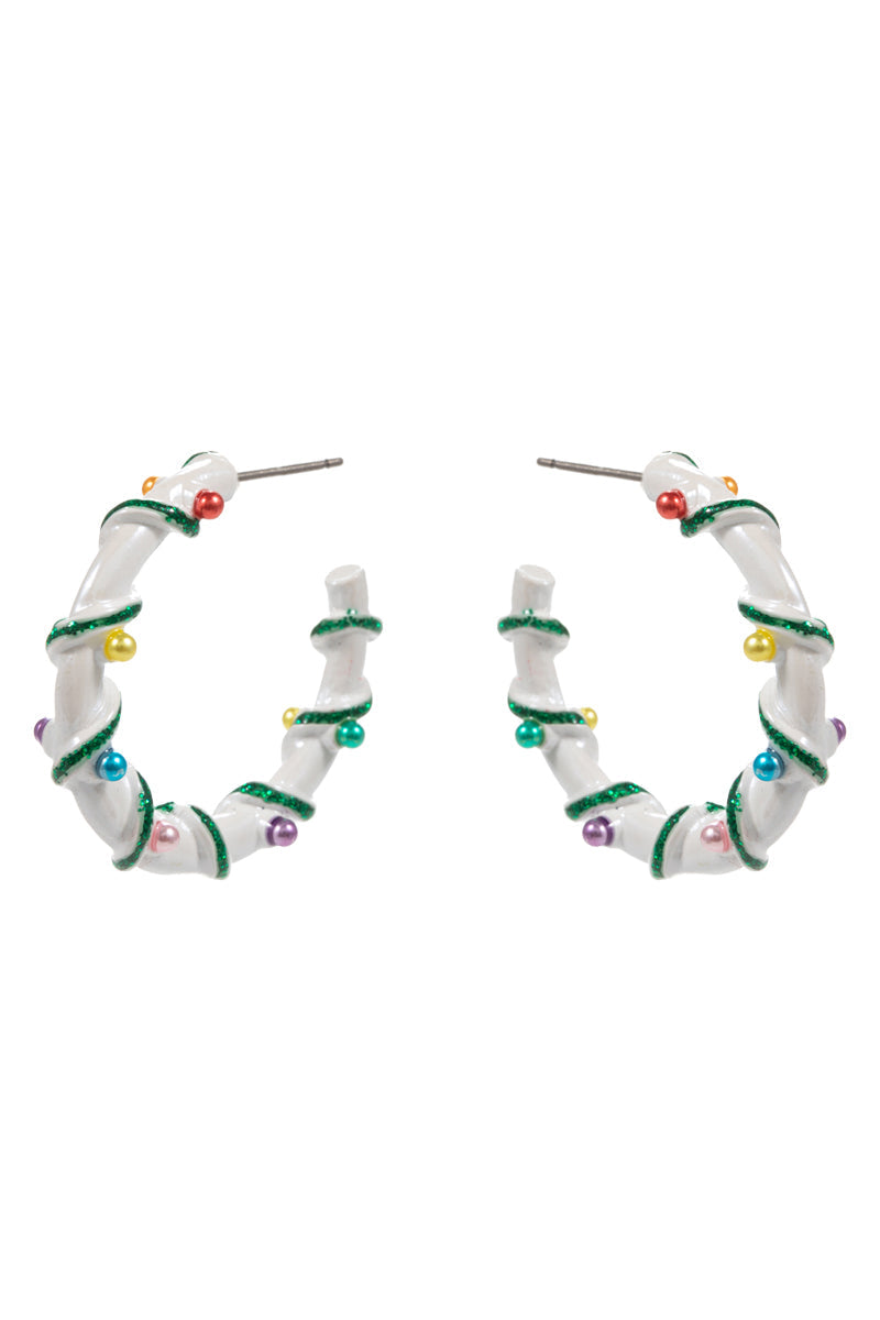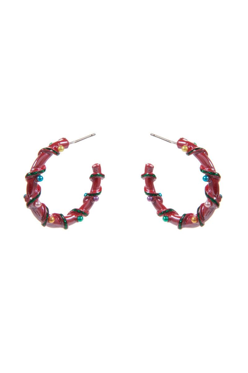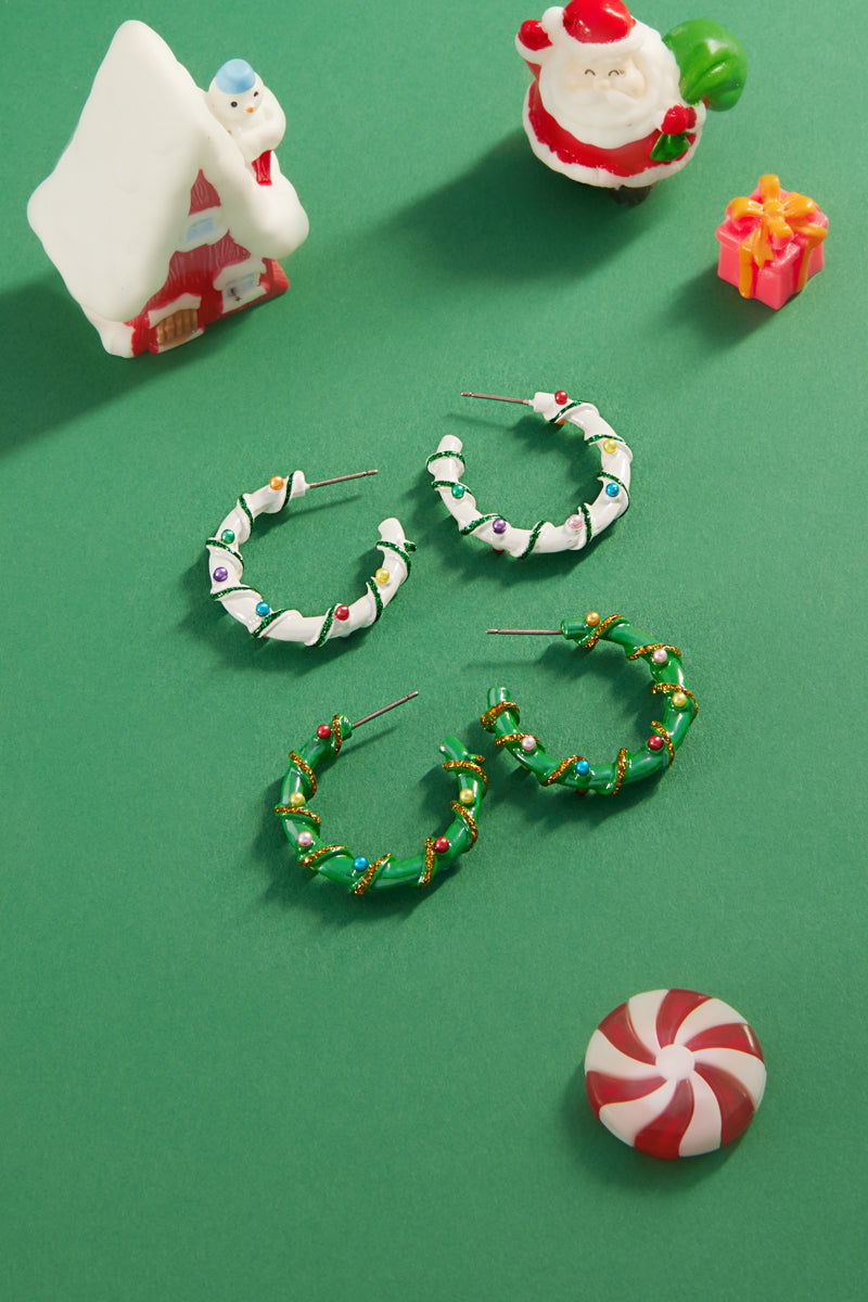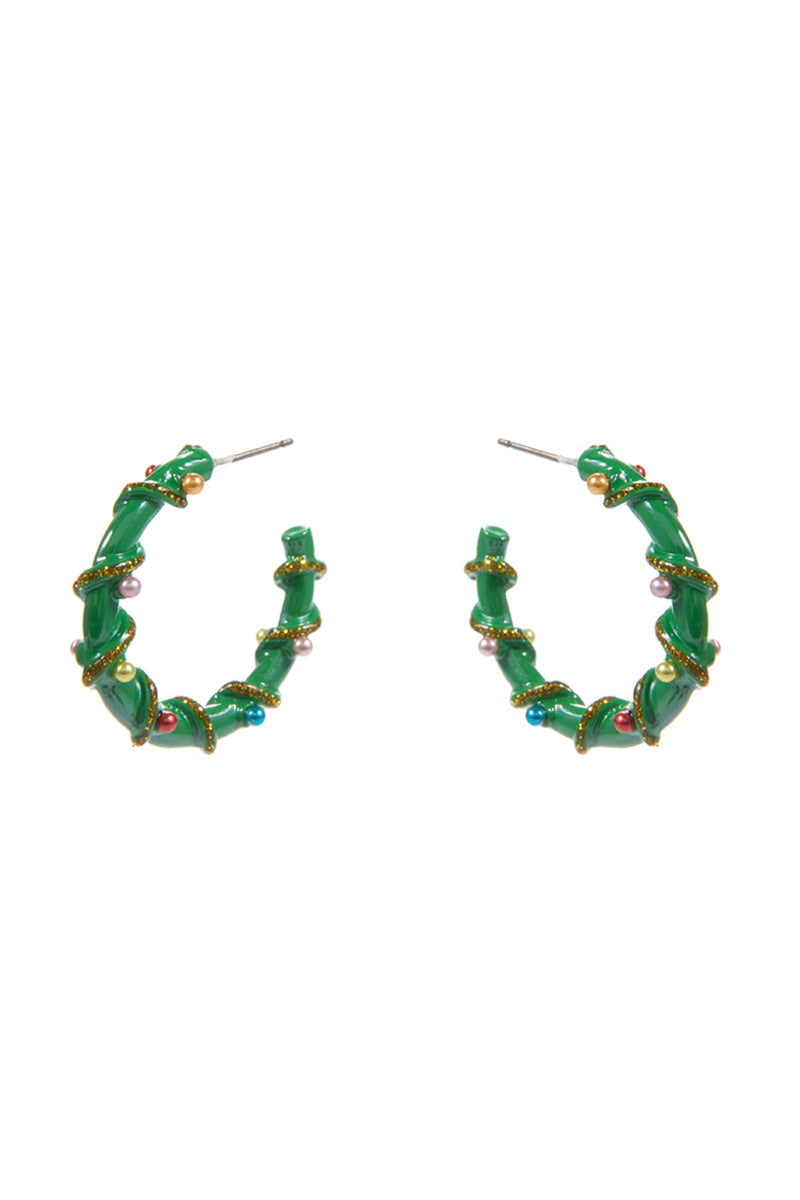 Christmas Color Enamel String Pearl Hoop Earrings