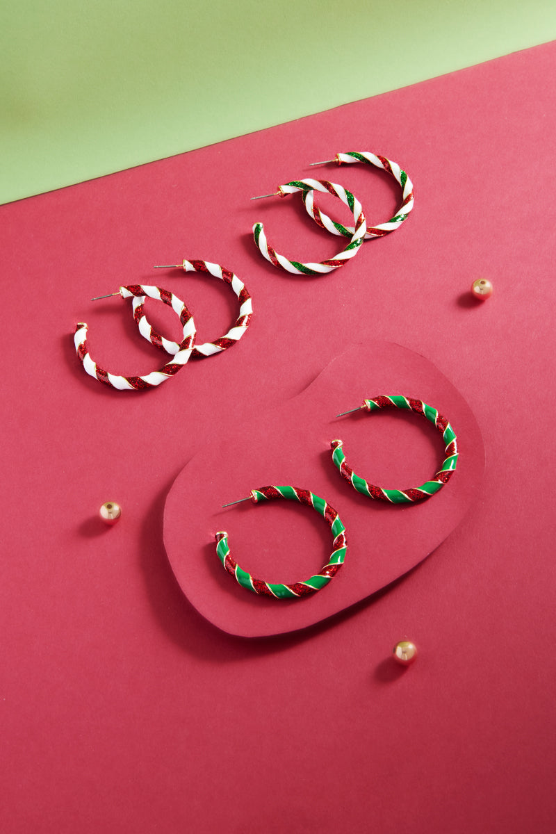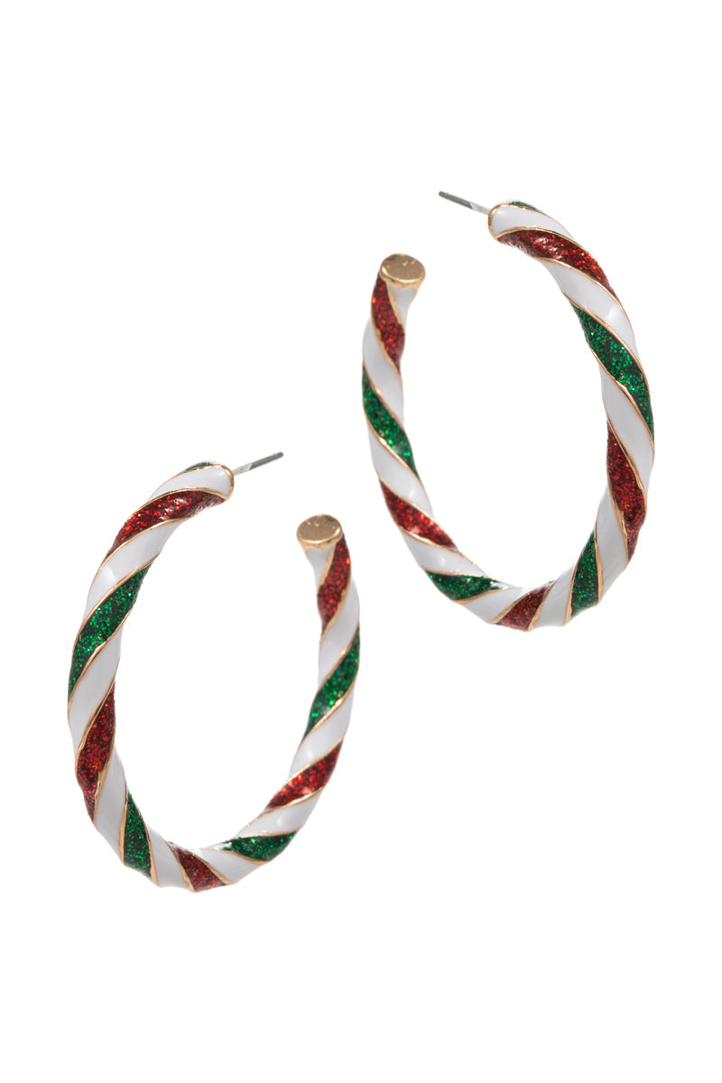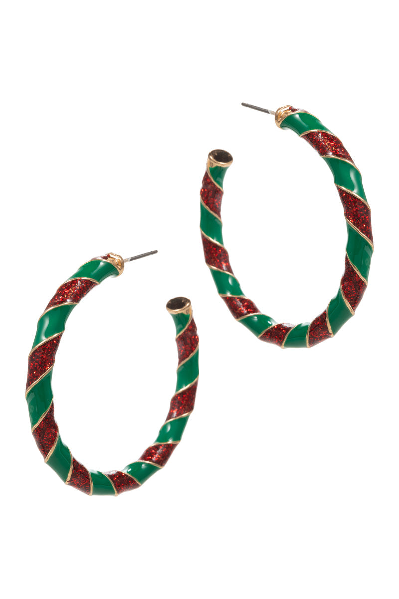 Upgrade your holiday style with our 1.5-inch twisted round shaped Christmas colored enamel hoop earrings. Made with high-quality materials, these earrings are both festive and fashionable. Bring some cheer to your wardrobe with these statement earrings.