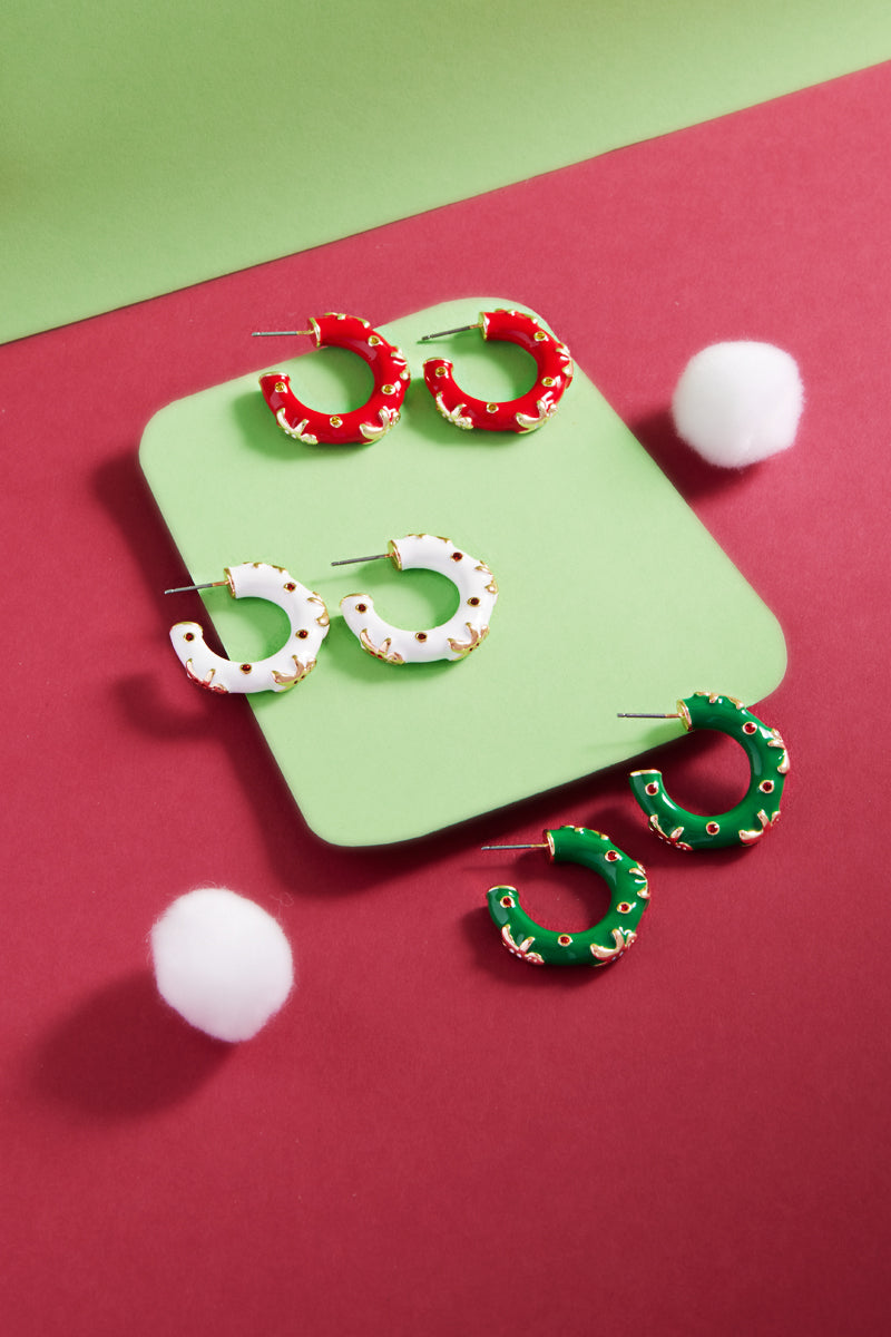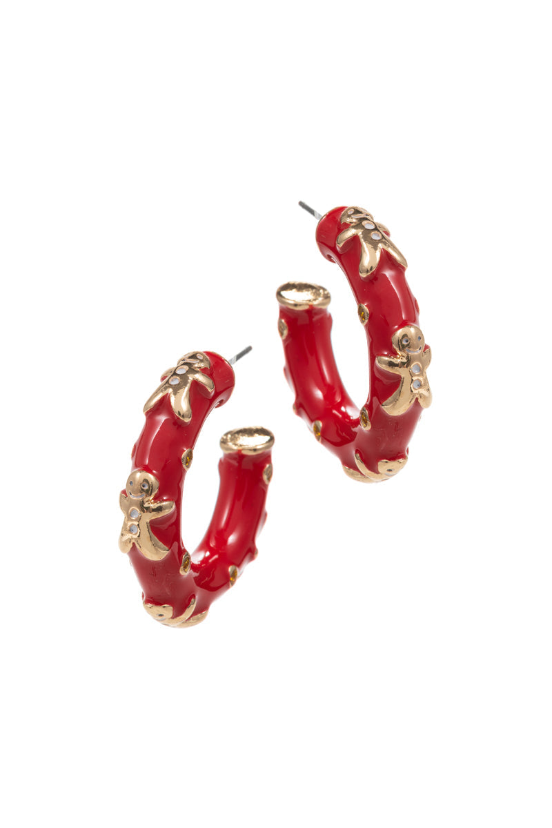 These 1.1 inch round shaped enamel hoop earrings feature a charming gingerbread man pattern. With their unique design and high quality materials, these earrings are perfect for adding a touch of whimsy and style to any outfit. Crafted with care, these earrings are sure to become a beloved addition to your jewel