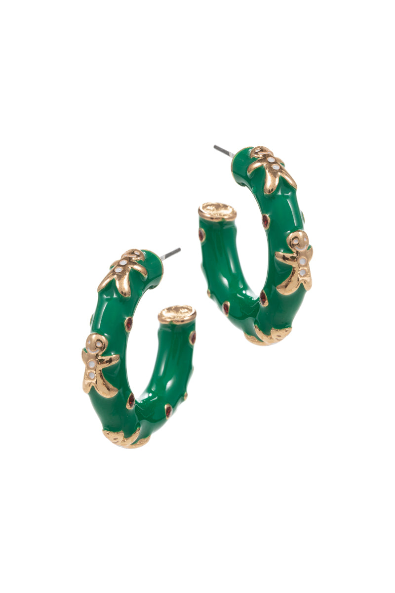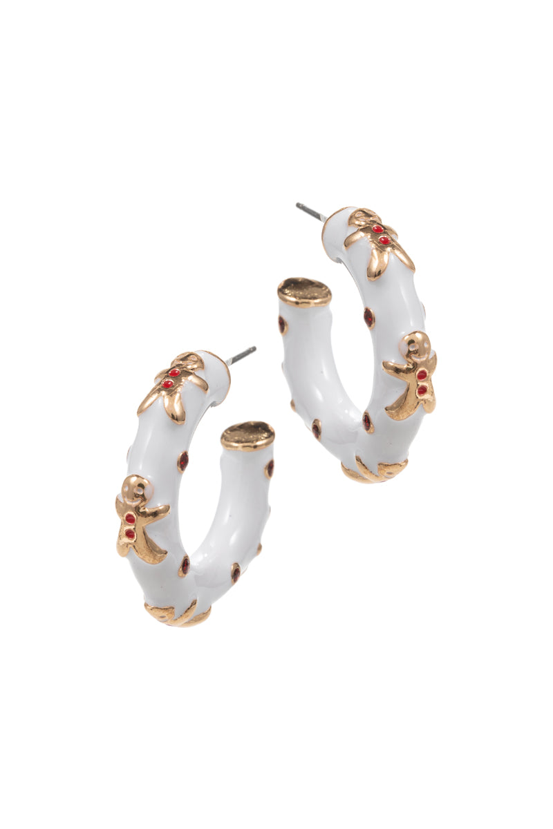 Christmas Round Gingerbread Enamel Hoop Earrings