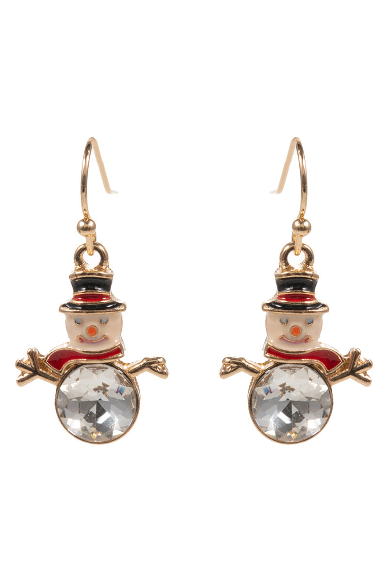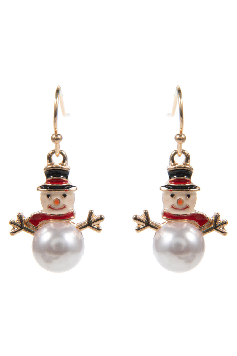 Christmas Snowman Enamel Pearl Brass Hook Earrings
